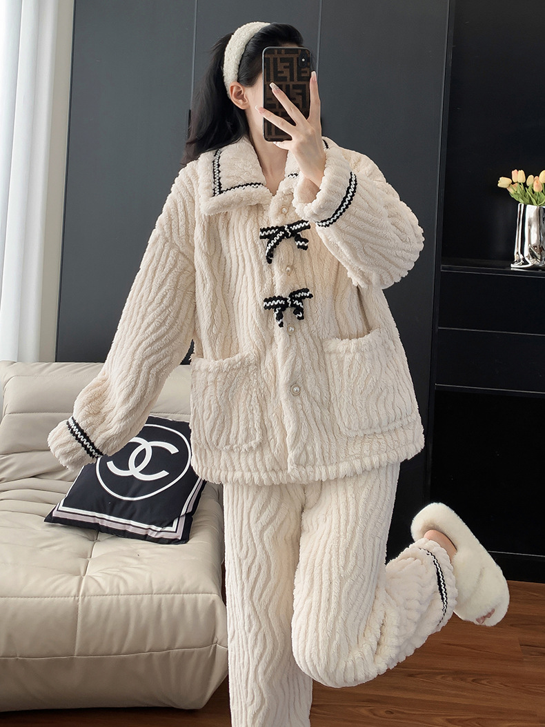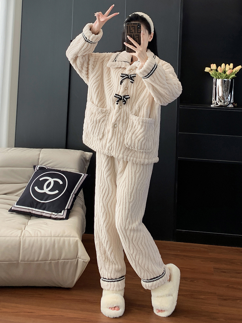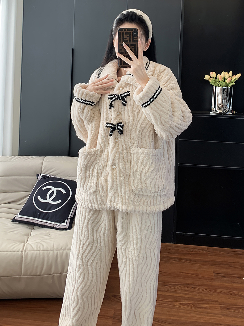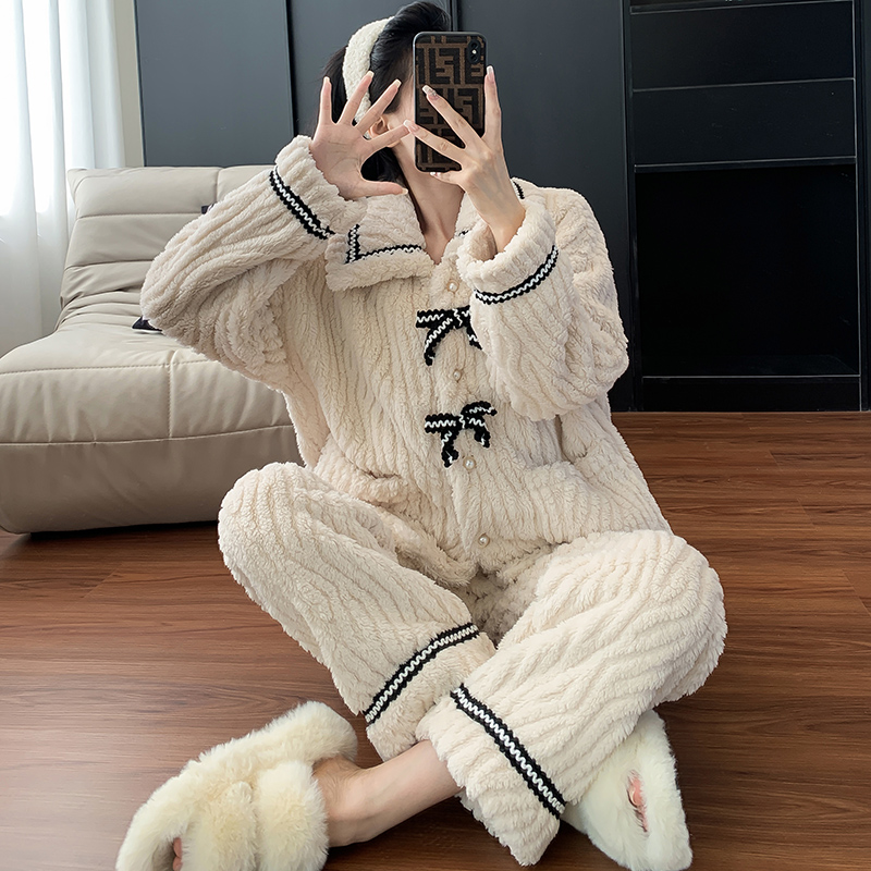 여성용 리턴 불가 나비넥타이 잠옷, 가을 겨울 산호 벨벳 홈웨어, 플란넬 두꺼운 벨벳, 겨울 스위트 남성용스토어 가기