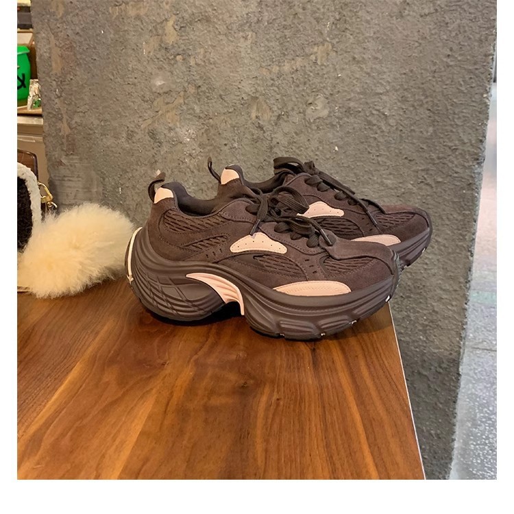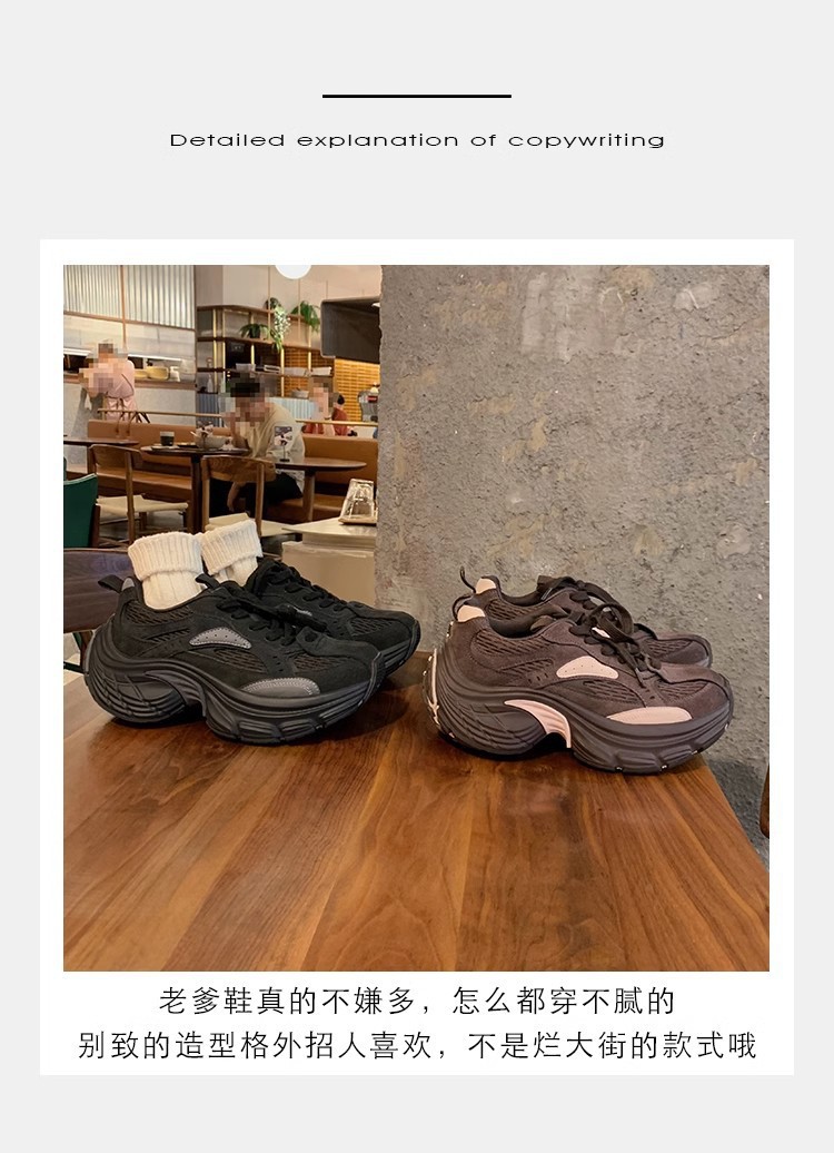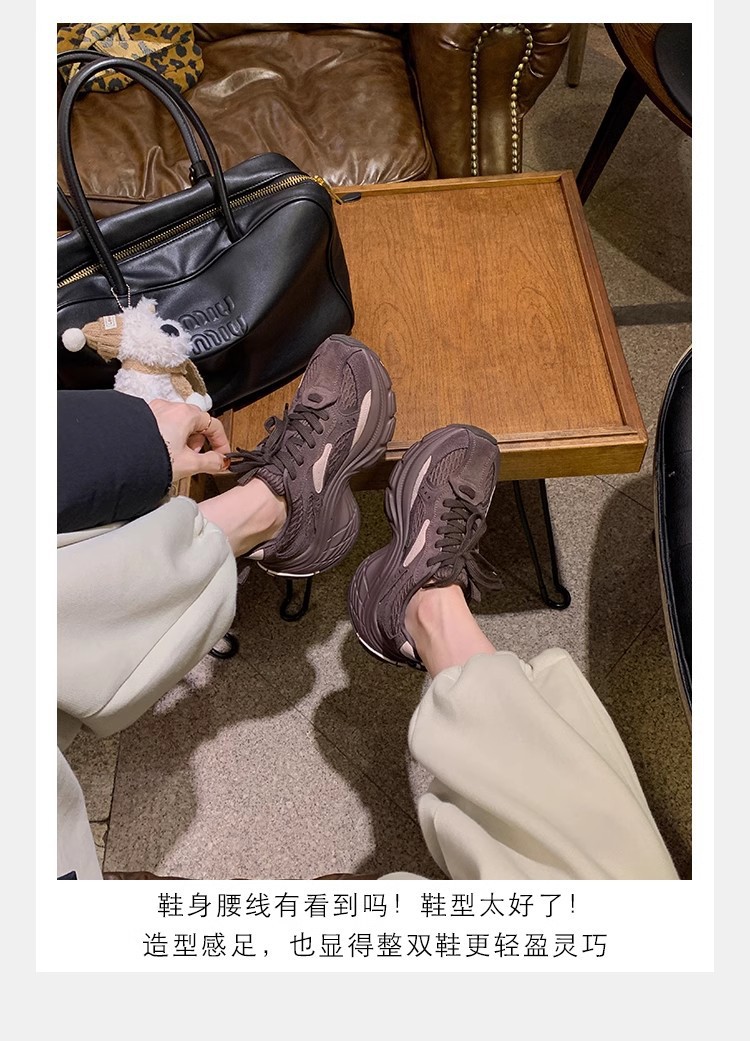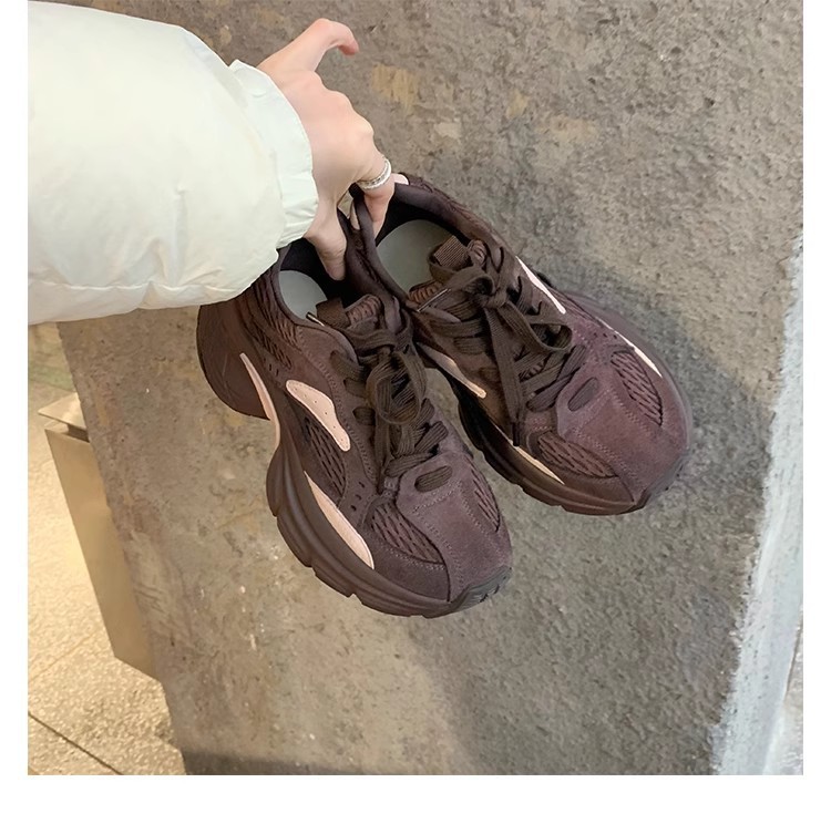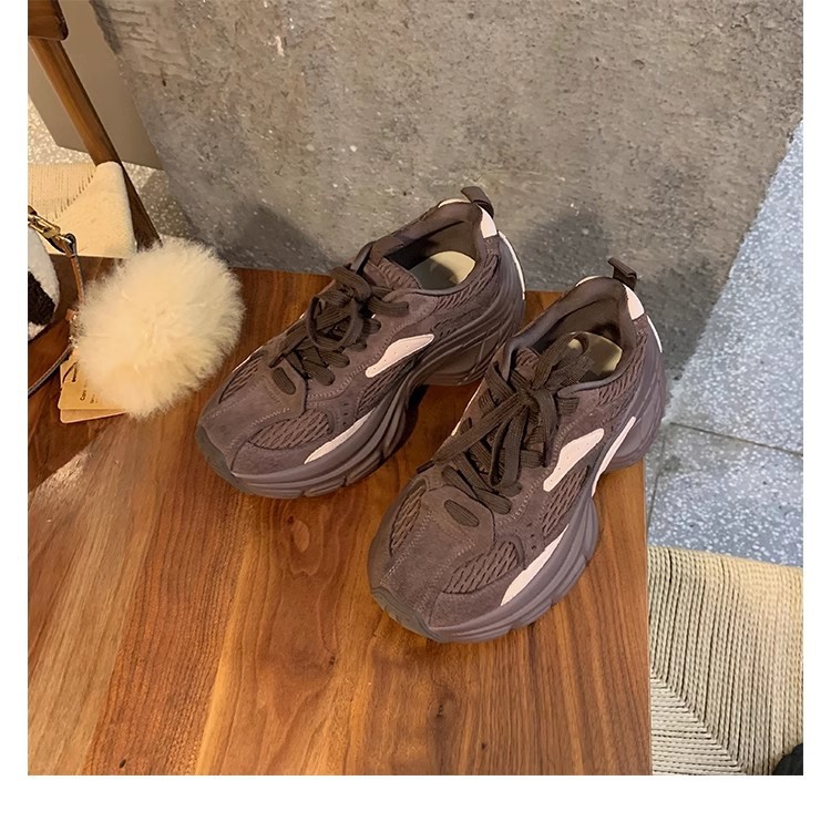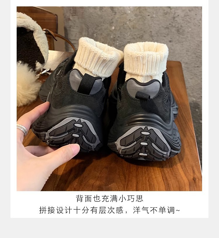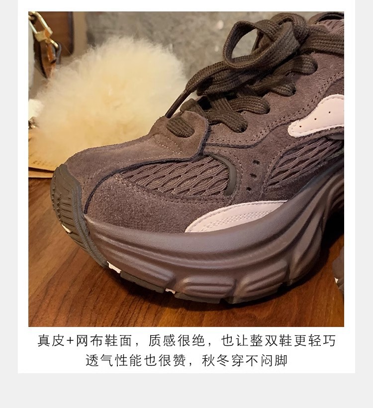 Cowhide Edition ~ 포도 엄마 같은 스타일 스포츠 스타일 컬러 매칭 레이스 업 두꺼운 하단 스웨이드 토레 신발 여성의 가을과 겨울