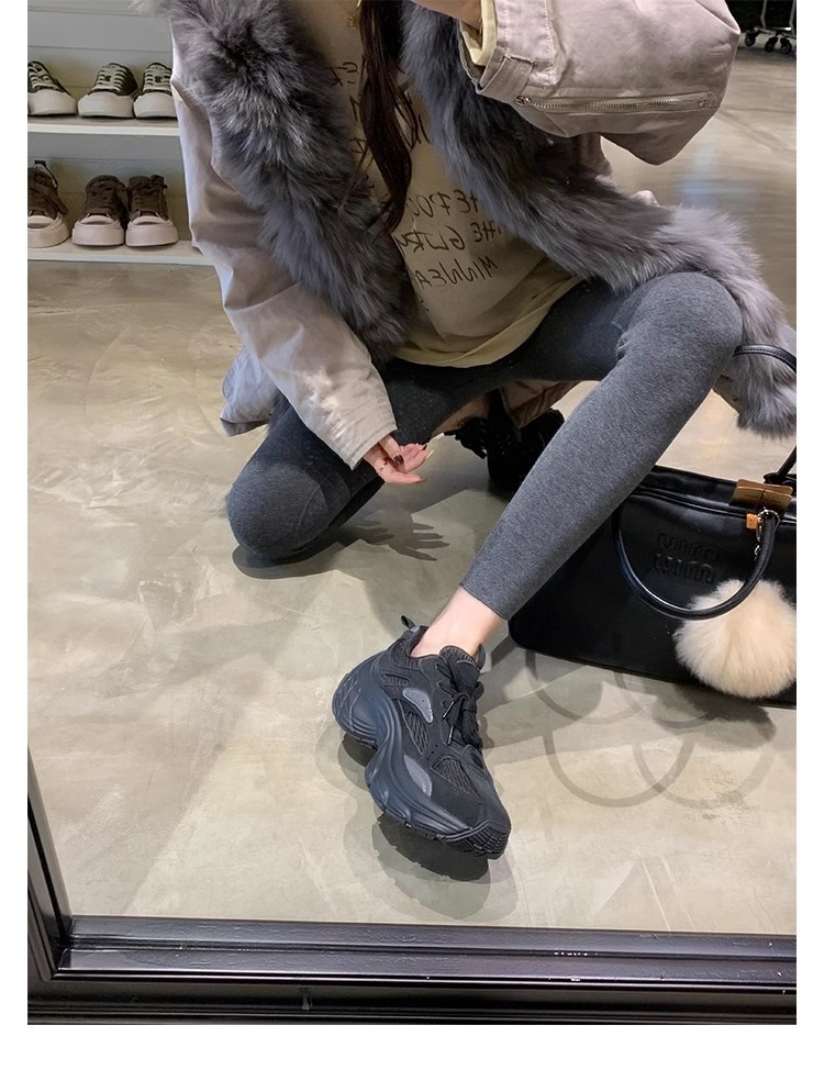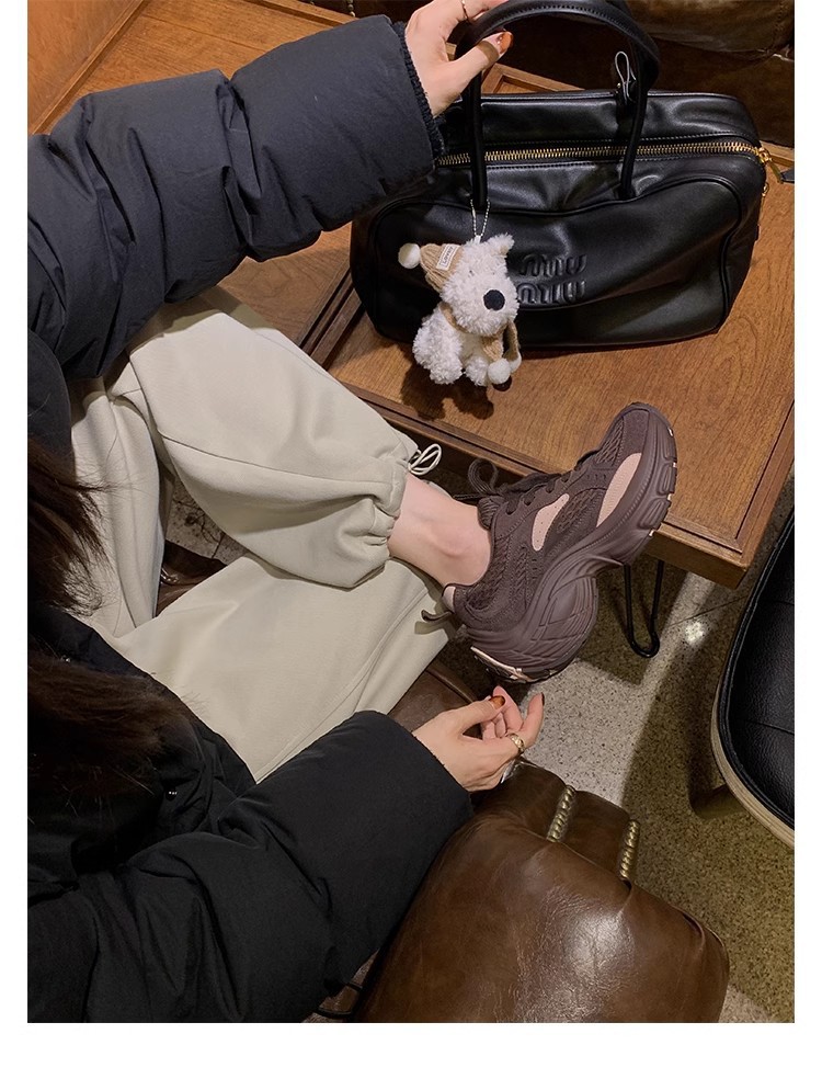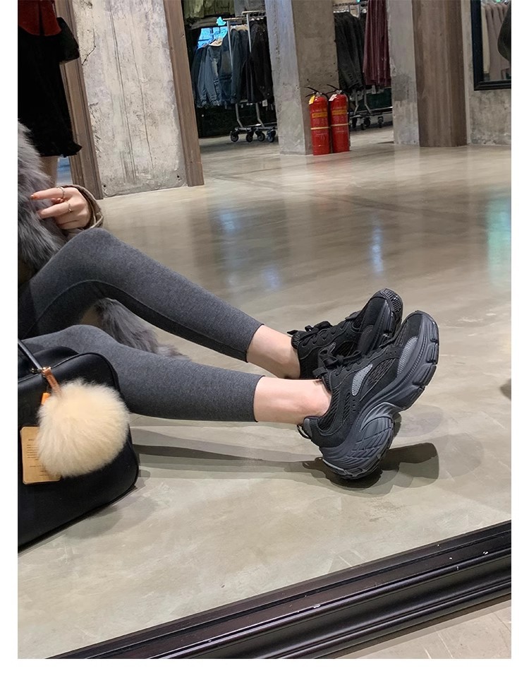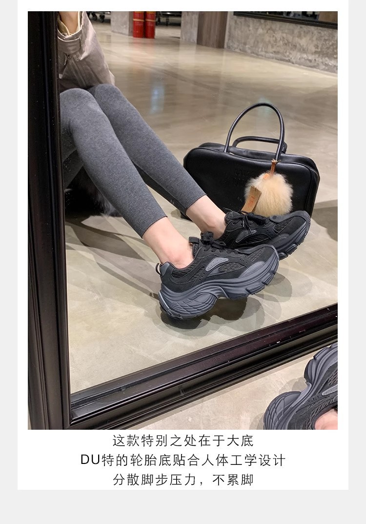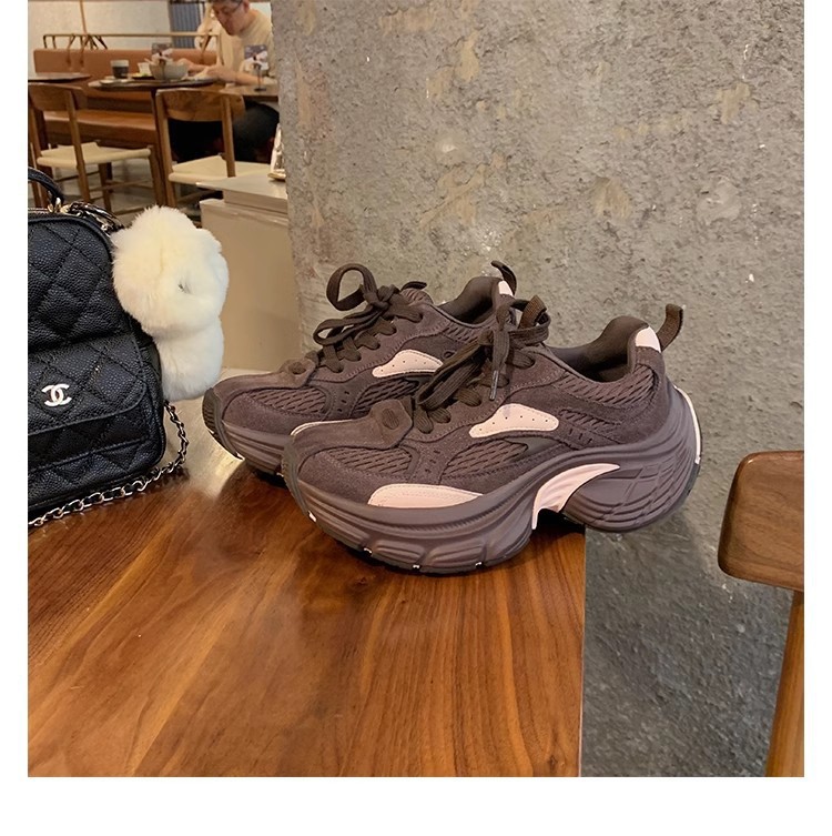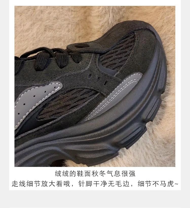 Cowhide Edition ~ 포도 엄마 같은 스타일 스포츠 스타일 컬러 매칭 레이스 업 두꺼운 하단 스웨이드 토레 신발 여성의 가을과 겨울