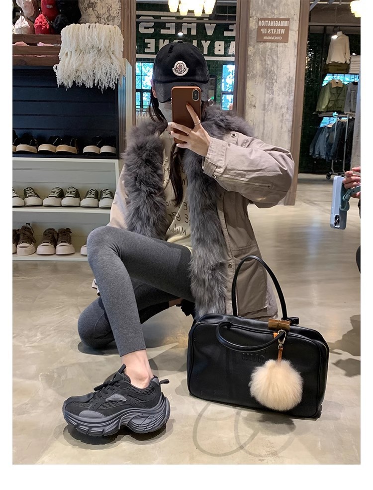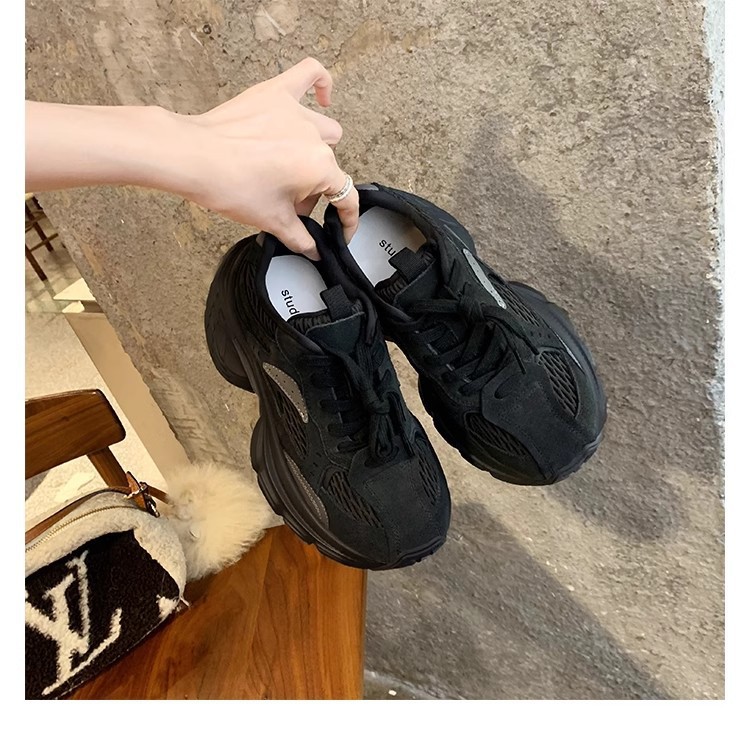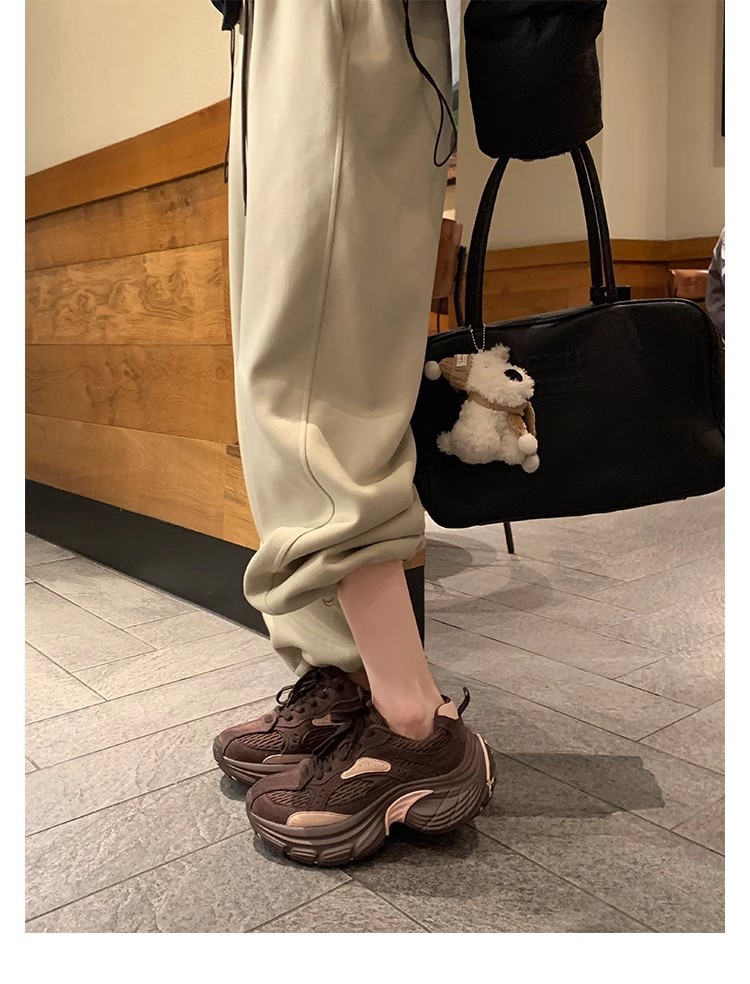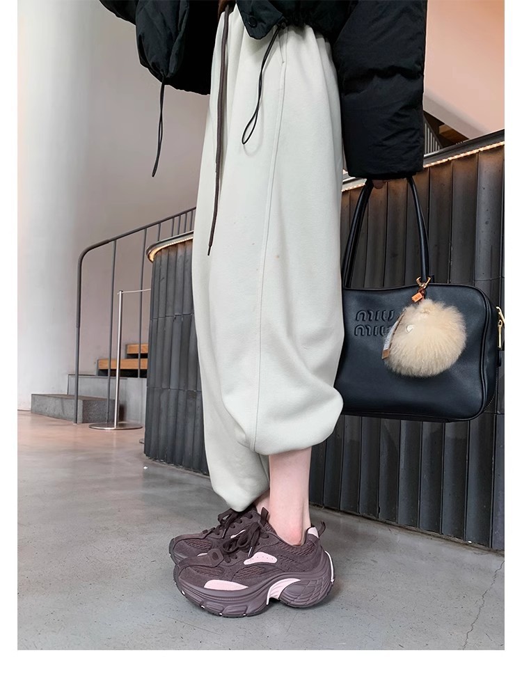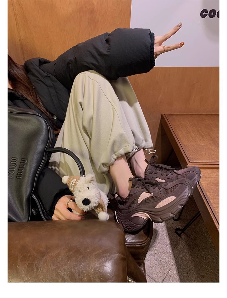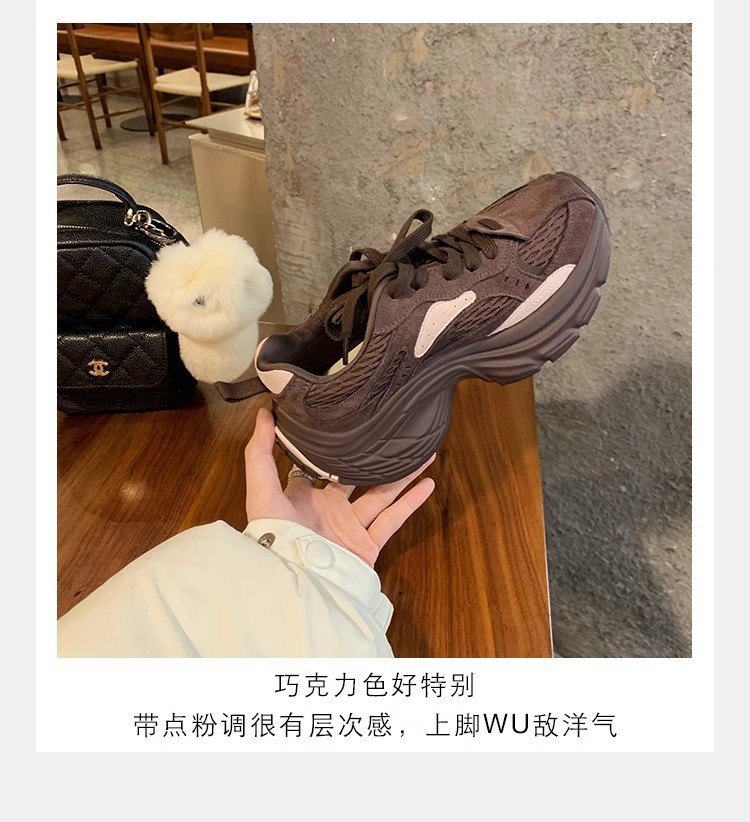 Cowhide Edition ~ 포도 엄마 같은 스타일 스포츠 스타일 컬러 매칭 레이스 업 두꺼운 하단 스웨이드 토레 신발 여성의 가을과 겨울