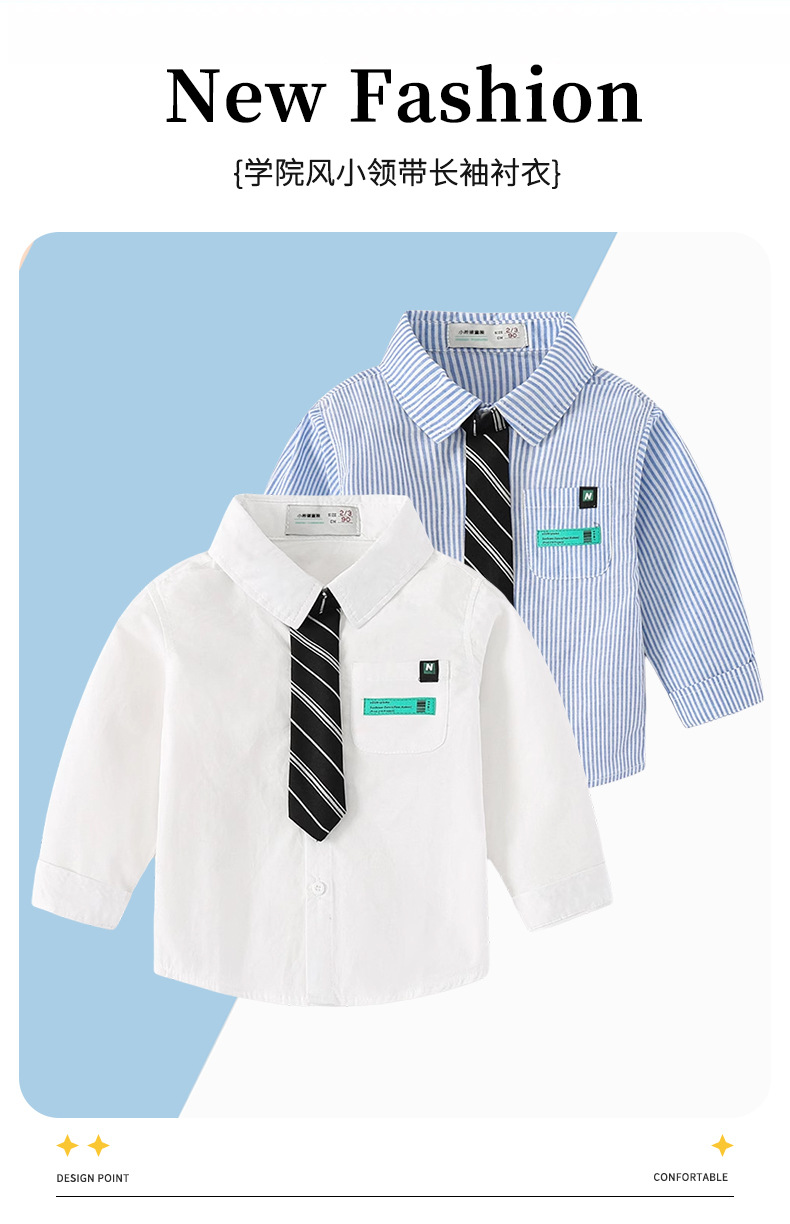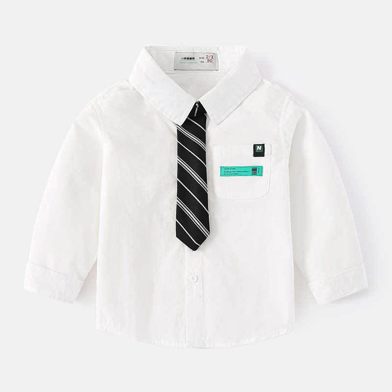 어린이 셔츠 긴팔 면화 새로운 도착 남자 아기의 흰색 작은 넥타이 탑 서양식 어린이 캐주얼 셔츠 봄과 가을스토어 가기
