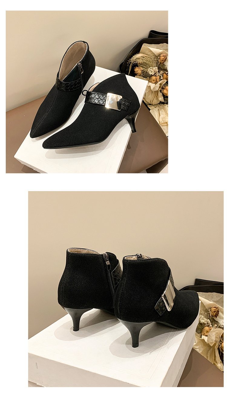빈티지 키튼 힐 패션 발목 부츠 여성 가을 겨울 새로운 뾰족한 스틸레토 힐 발목 베어 부츠 V-입 사이드 지퍼 하이힐