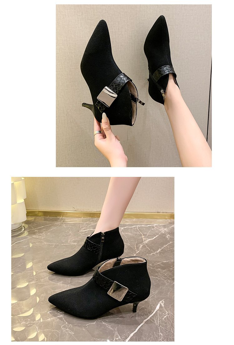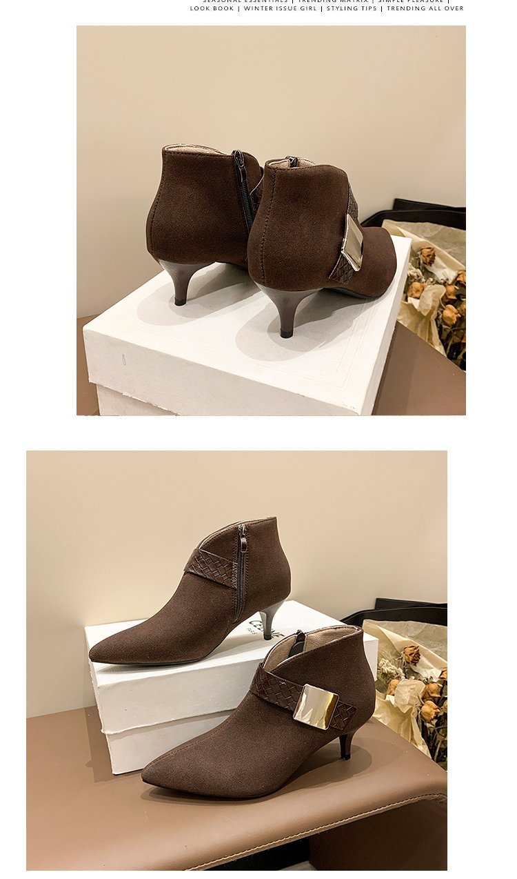 빈티지 키튼 힐 패션 발목 부츠 여성 가을 겨울 새로운 뾰족한 스틸레토 힐 발목 베어 부츠 V-입 사이드 지퍼 하이힐스토어 가기