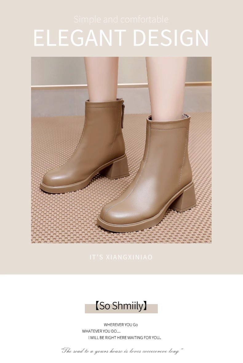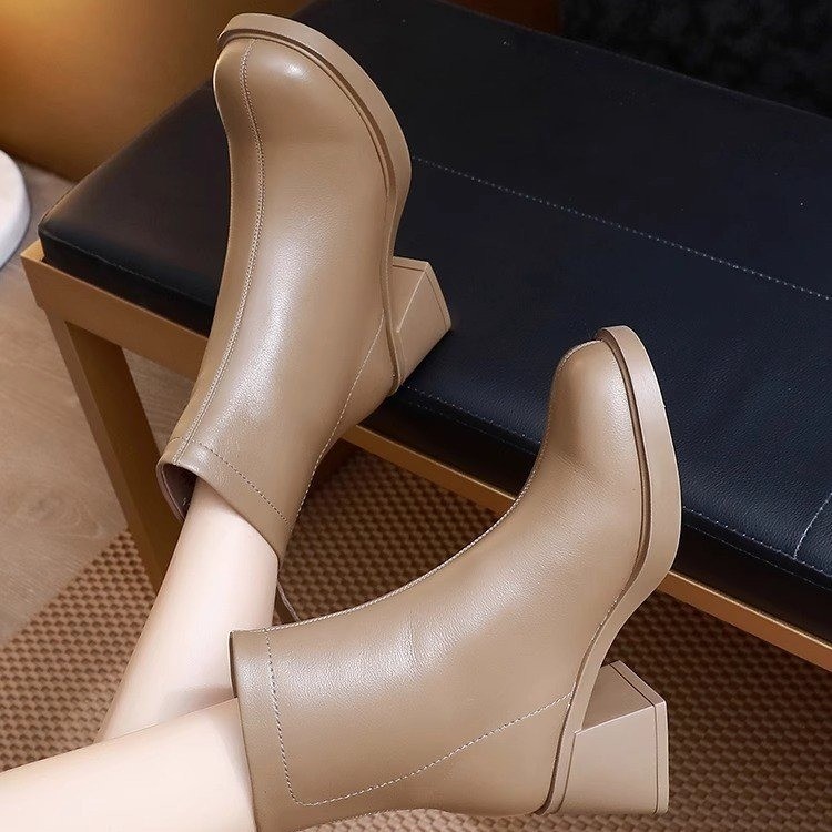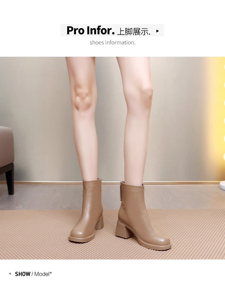 여성용 두꺼운 굽 작은 짧은 부츠 2024 새로운 얇은 부츠 영국 스타일의 하이힐 마틴 부츠 온라인 인기 가을과 겨울 기모 짧은 부츠스토어 가기