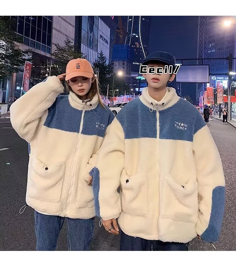 2024 양고기 양모 면 패딩 코트 남자 가을 겨울 패치 워크 느슨한 면 패딩 코트 한국식 트렌디 브랜드 홍콩 스타일 양고기 양모 코트스토어 가기