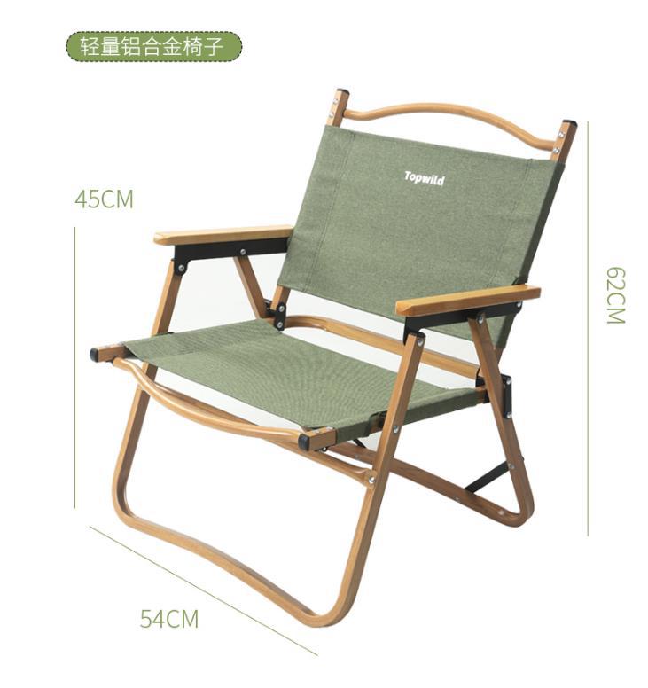 • 카키색 의자 (옥스포드 천 + 알루미늄 + 너도밤나무 팔걸이 + 뒷면 메쉬백)