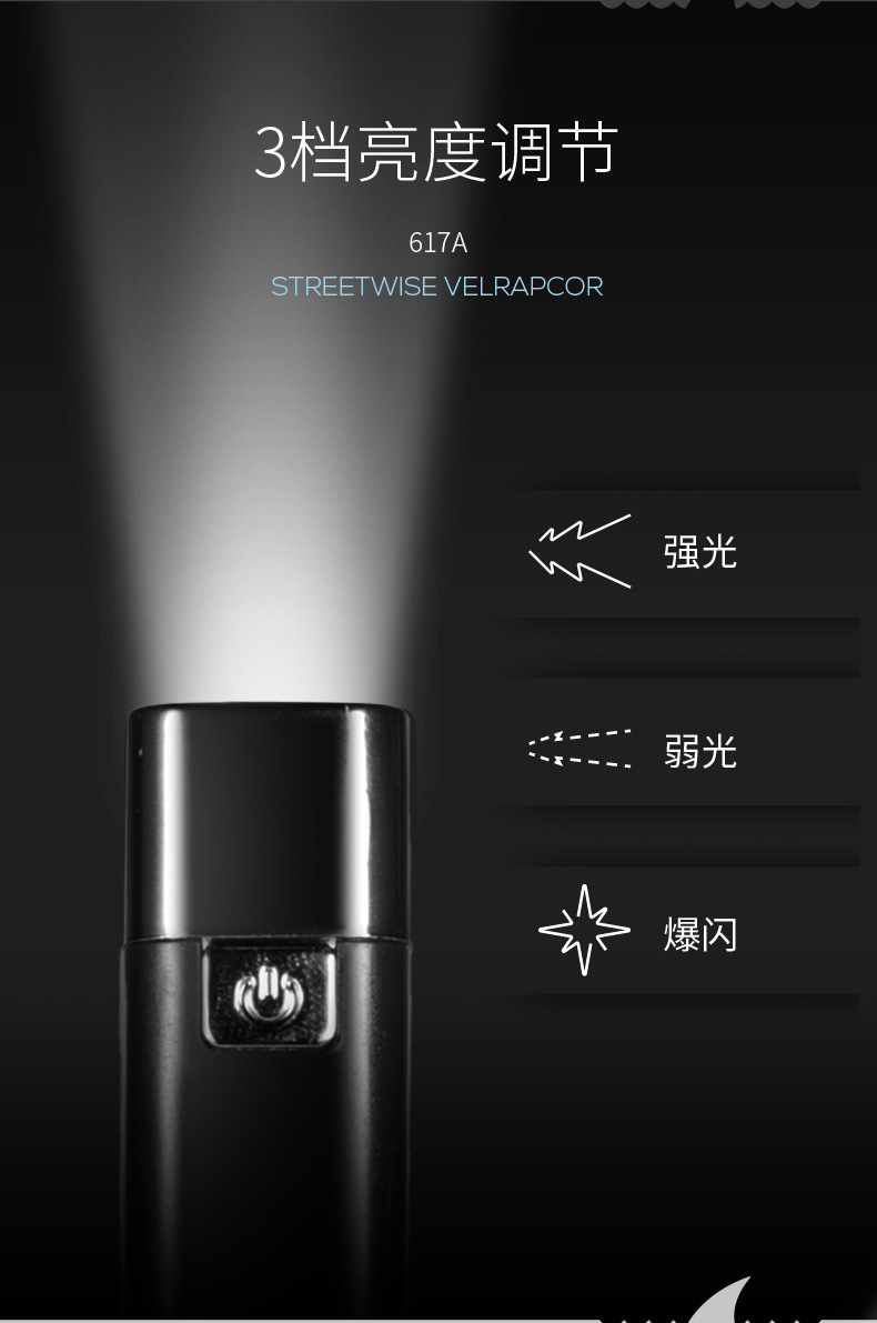 • 617B 고정 초점 소형 손전등 - 검정색 [내장 배터리 600MAH]