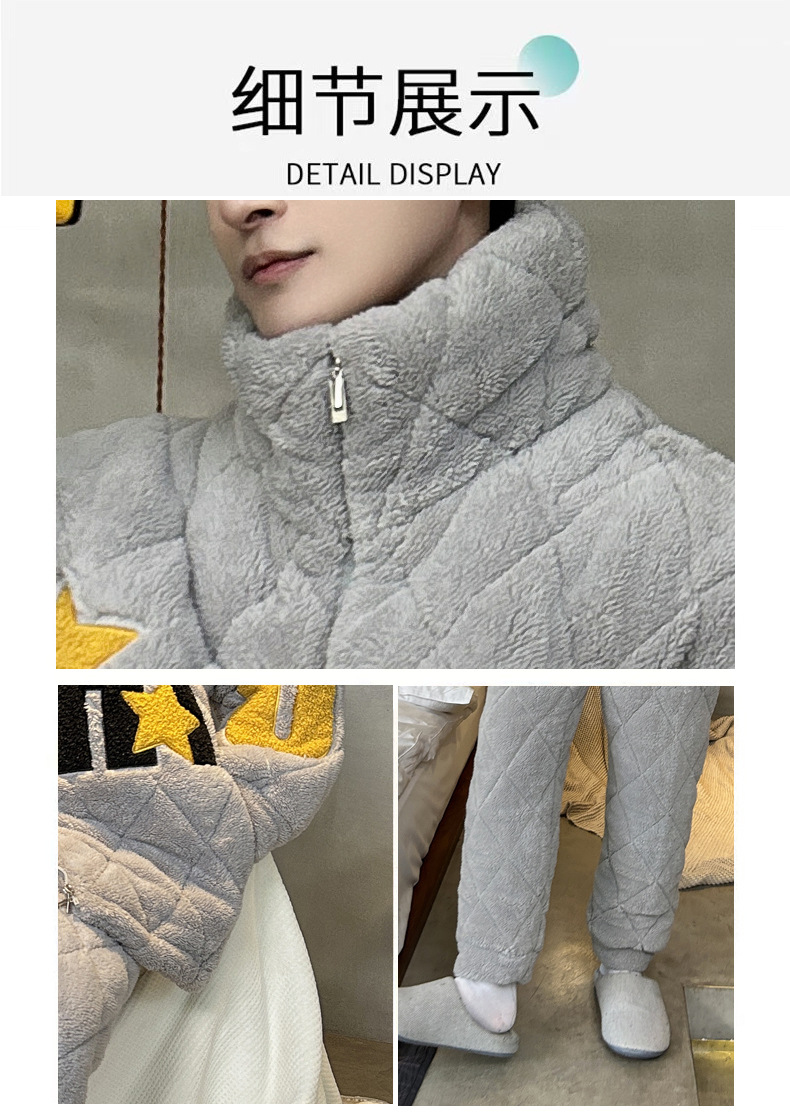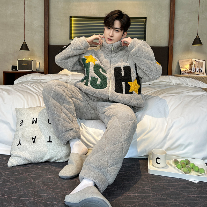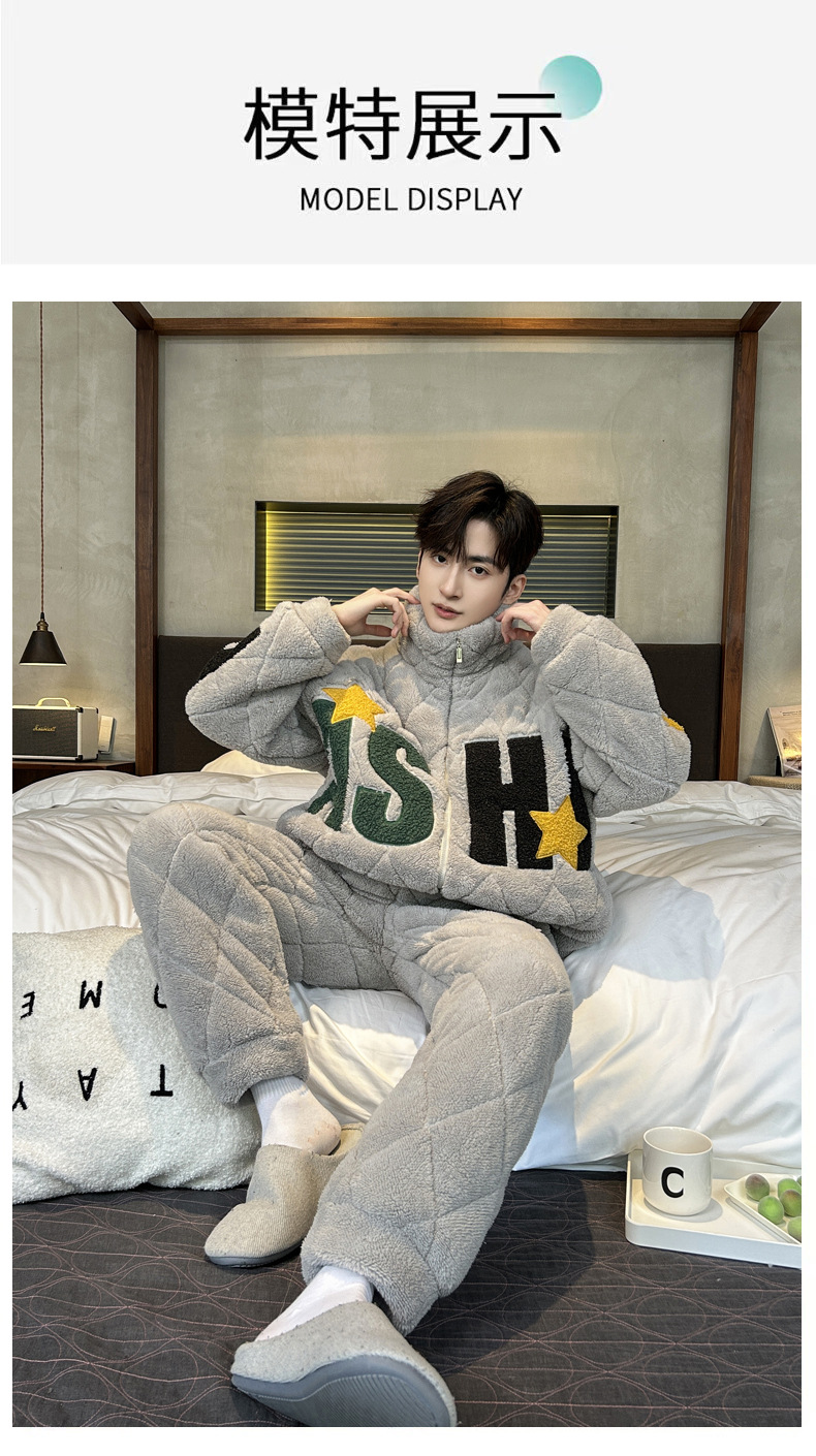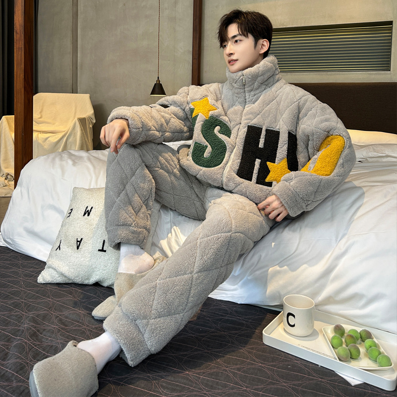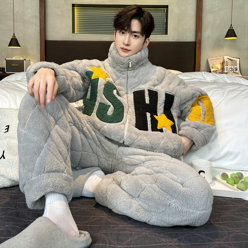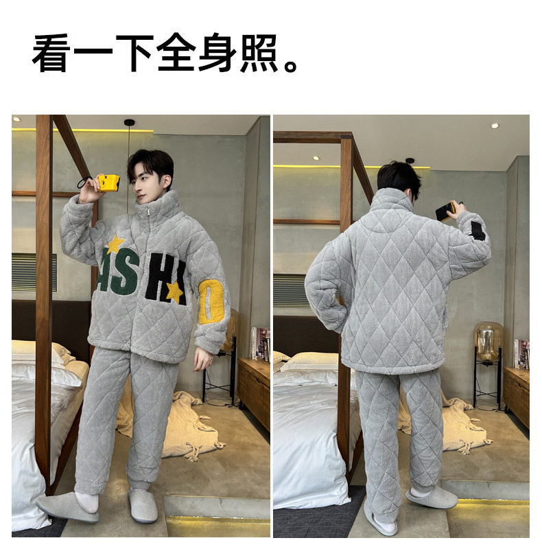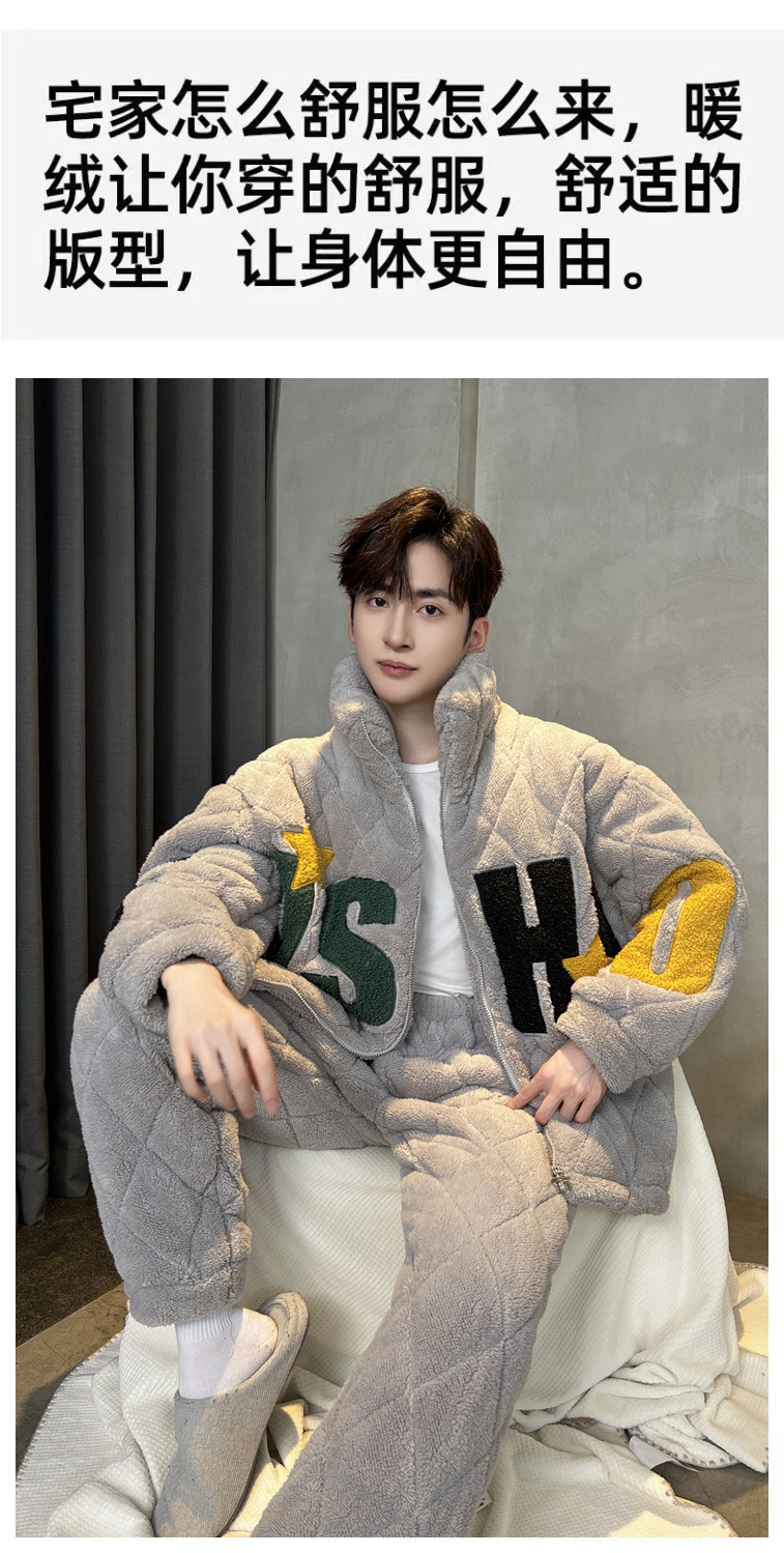 새로운 잠옷 남자의 겨울 두꺼운 3 층 면 따뜻한 산호 양털 가을과 겨울 남자 만화 지퍼 홈 옷스토어 가기