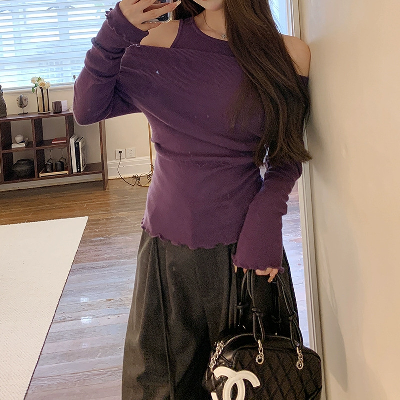 히비스커스 세련된 교수형 ~ 나무 귀 스웨터 여성의 2024 가을과 겨울 새로운 조끼 가짜 투피스 기본 셔츠 디자인 느낌스토어 가기
