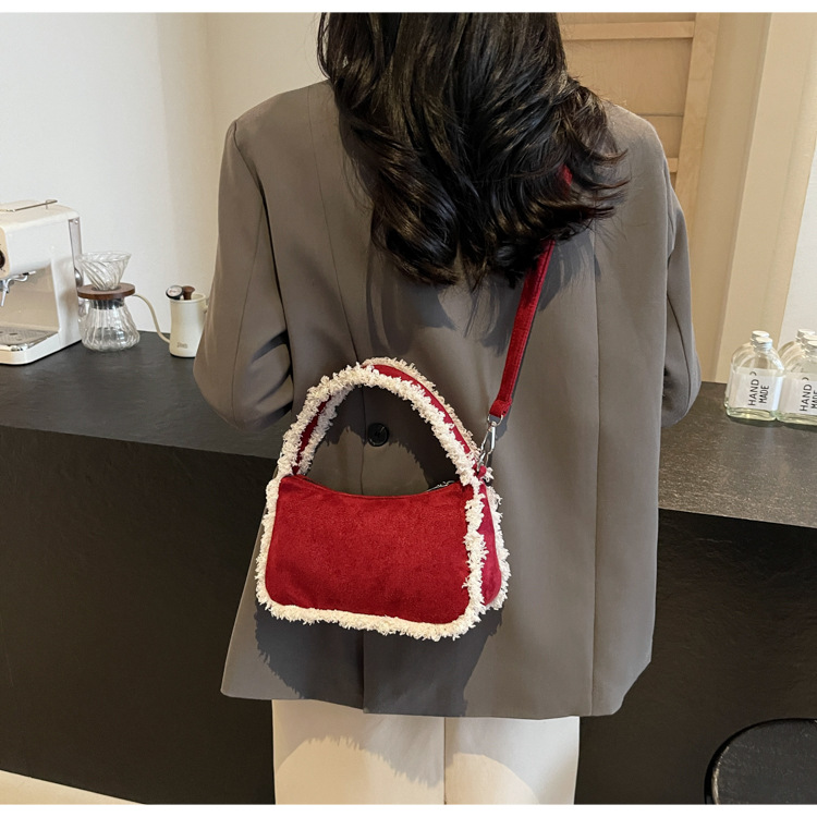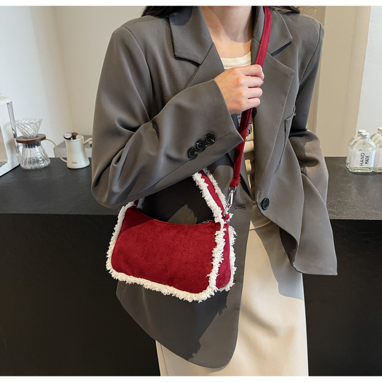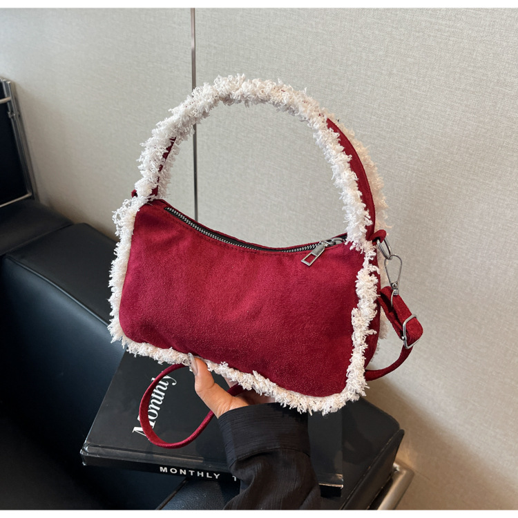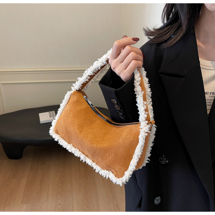 2024 가을과 겨울 새로운 패션 양모 대용량 어깨 가방 트렌디 한 스티칭 언더암 가방 마오 마오 가방 여성용 가방스토어 가기