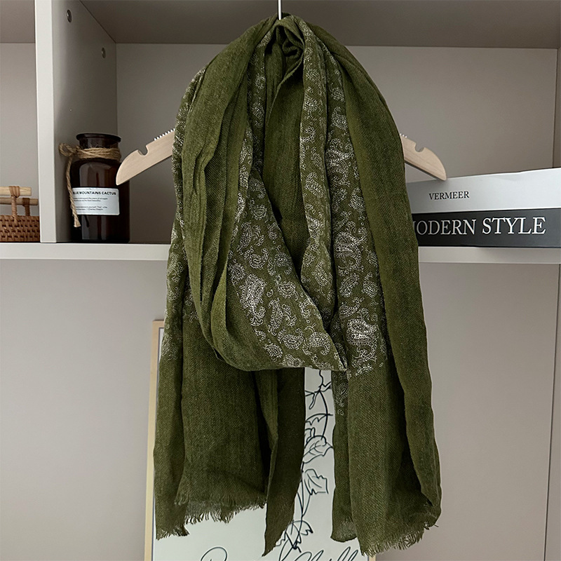 가을과 겨울 새로운 코튼 리넨 스카프 실크 스카프 올 매치 하이 엔드 캐슈 꽃 목도리 봄과 여름 얇은 대형 에디션 인쇄 여성