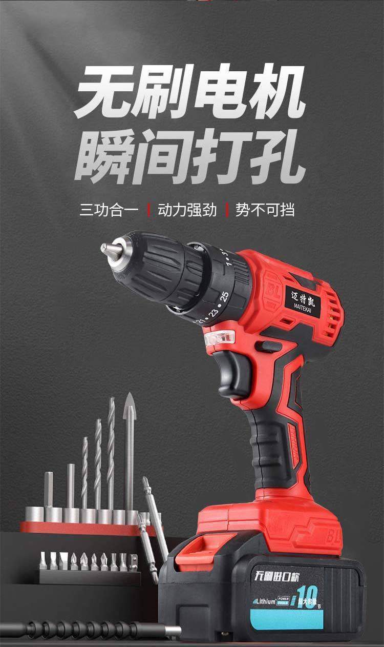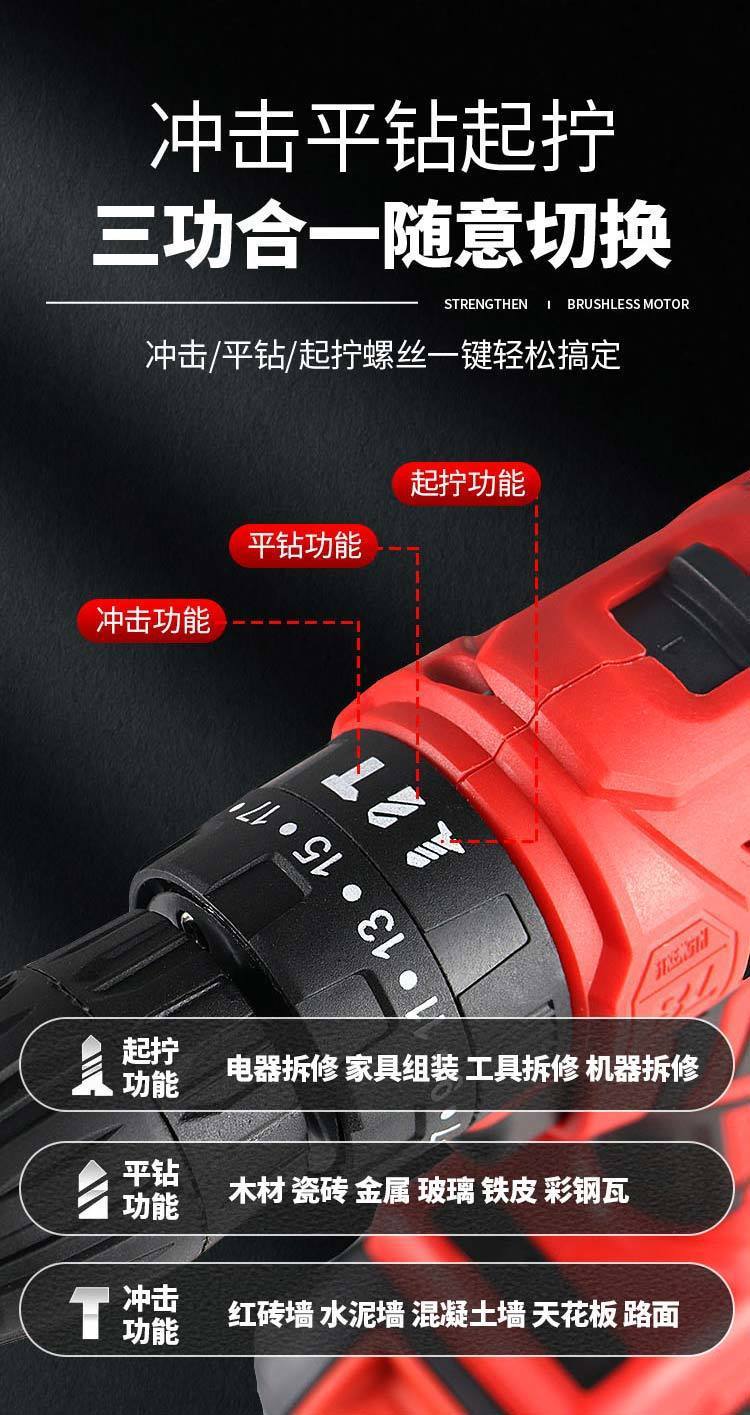 브러시리스 고성능 충전식 드릴 임팩트 리튬 전기 드릴 2 단 핸드 전기 드릴 가정용 산업용 다기능 전기 드라이버