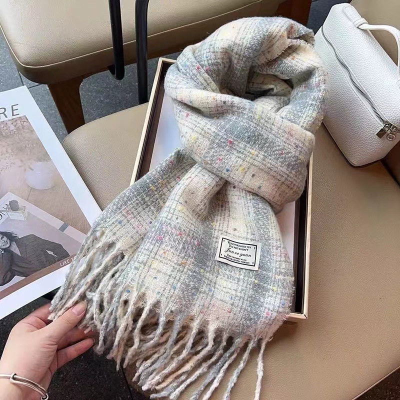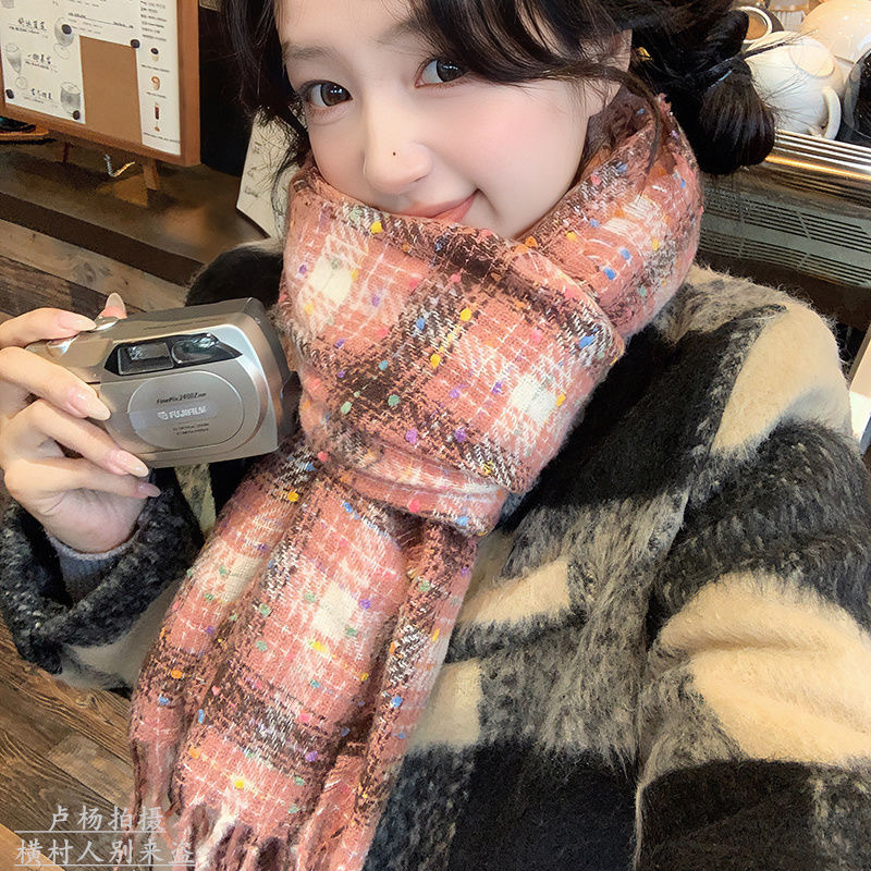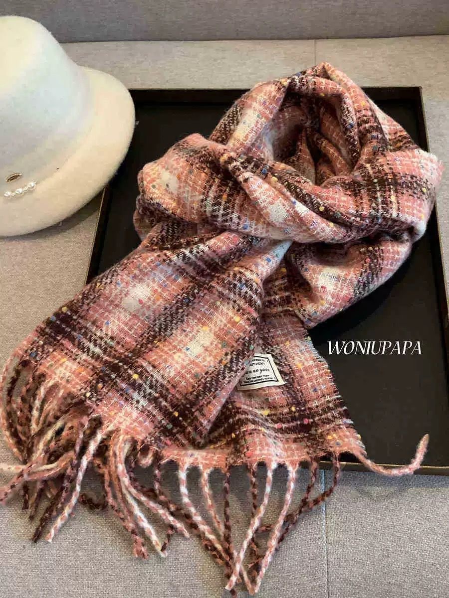 2024 새로운 스카프 여성의 겨울 흰색 두꺼운 조커 그물 빨간 격자 무늬 스카프 따뜻한 높은 감각 목도리 도매스토어 가기