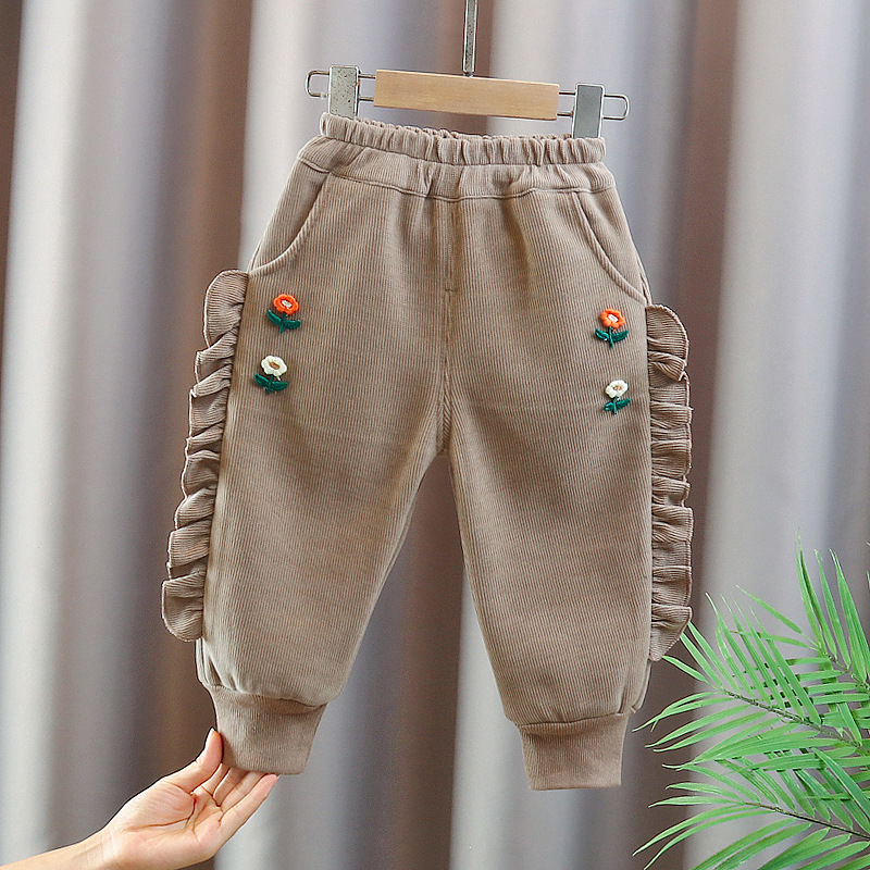소녀들의 가을과 겨울 바지 양털 달린 바지 외부 착용 새 가을 중소형 어린이 소녀 발 바인딩 바지 어린이 따뜻한 바지스토어 가기