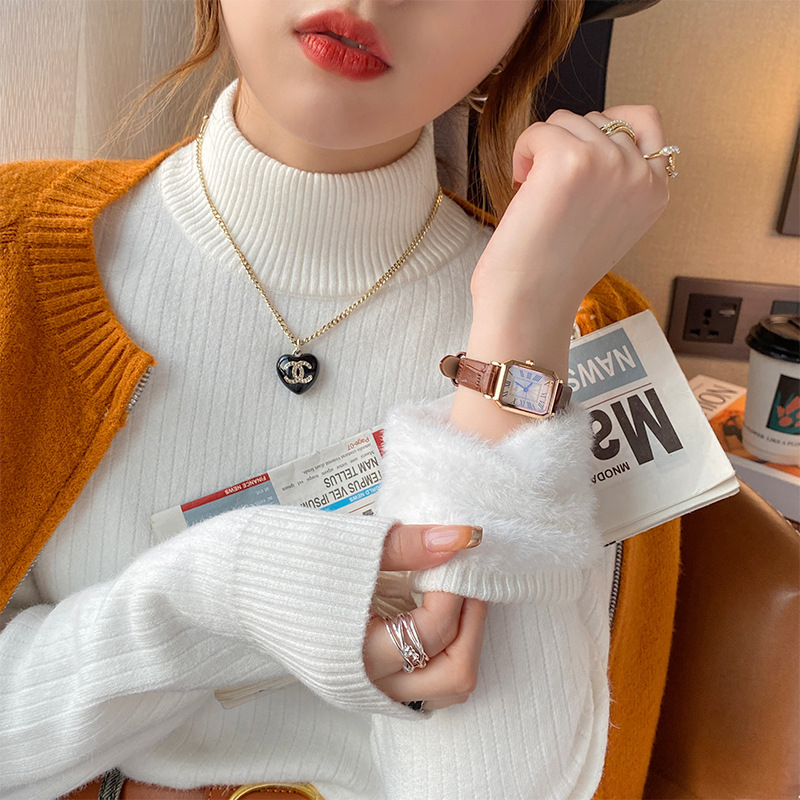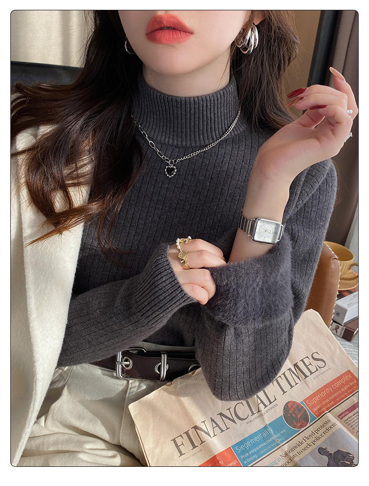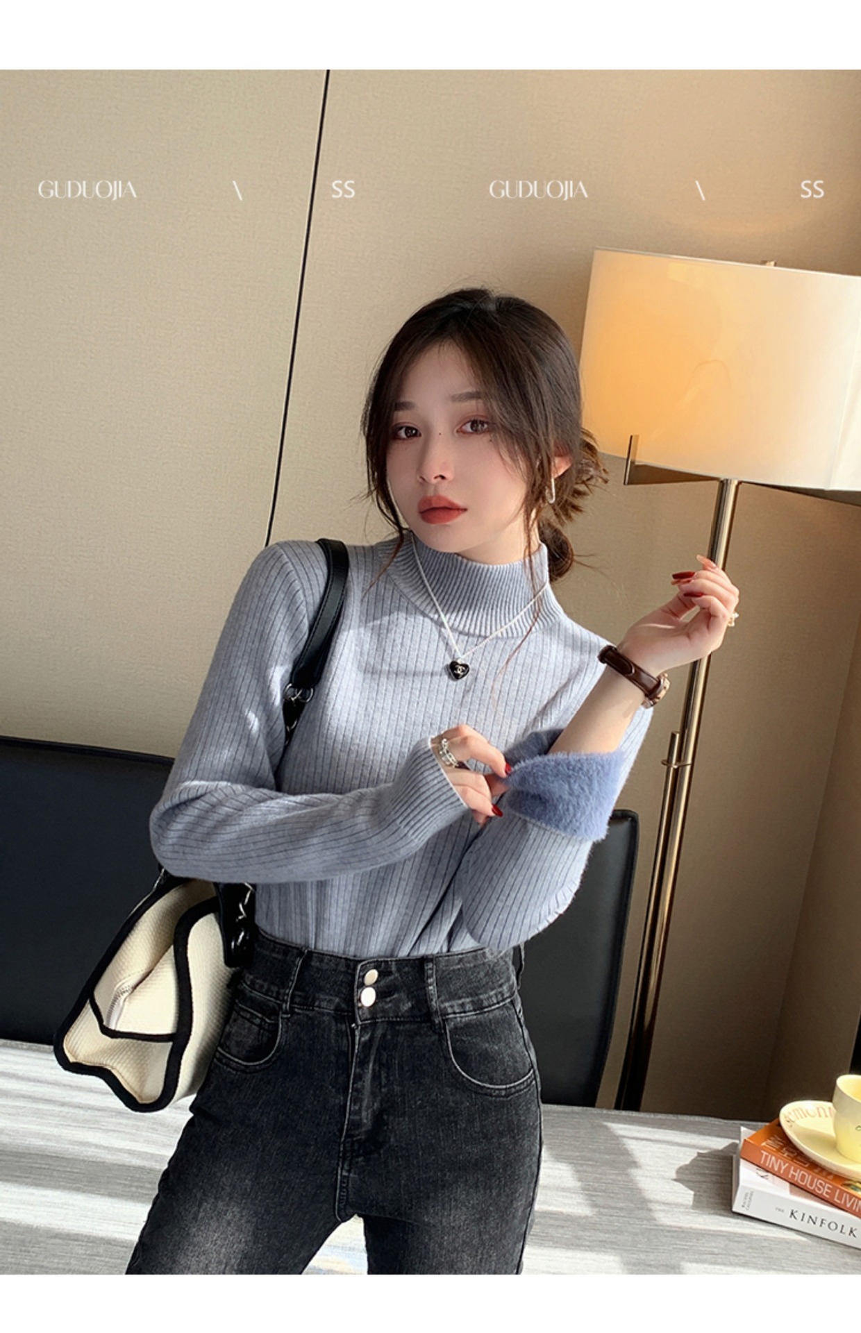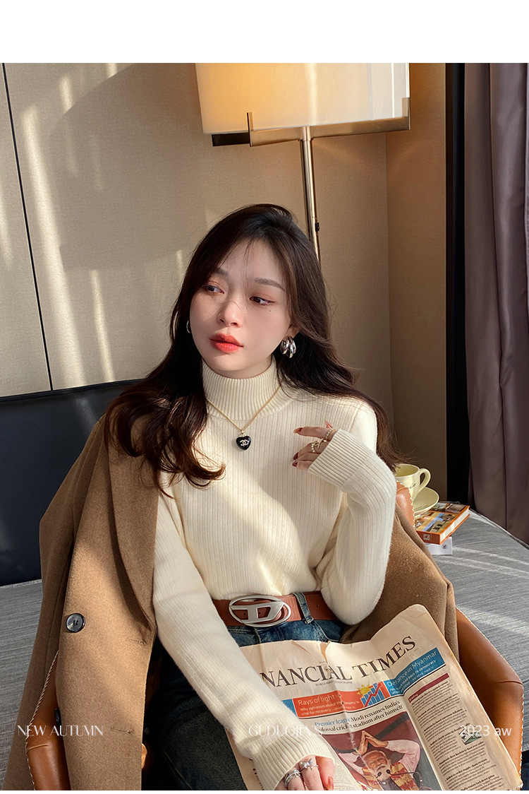 화이트 니트베이스 셔츠 하프 터틀넥 겨울 원피스 따뜻한 탑 가을과 겨울 내부 기모 스웨터 여성용 두꺼운 벨벳