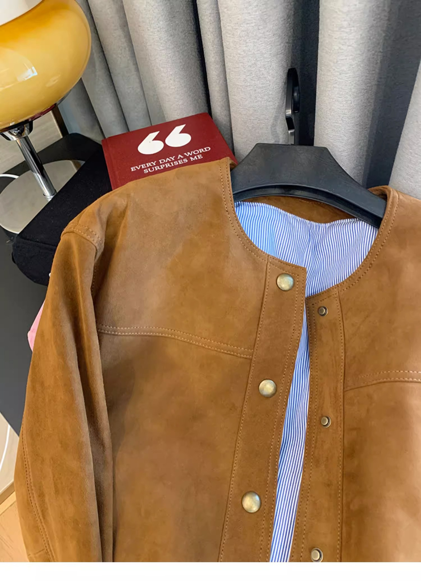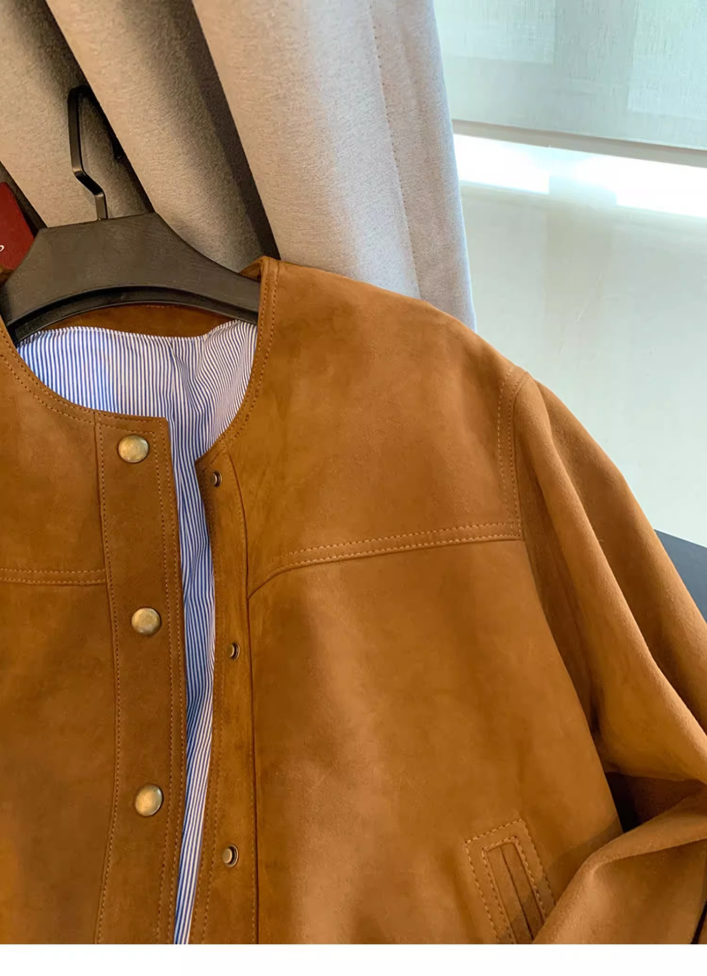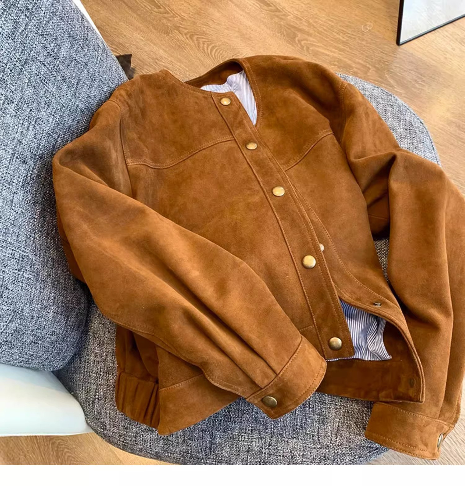高级感棕色麂皮短外套女复古2024新款设计感美式休闲潮牌夹克上衣