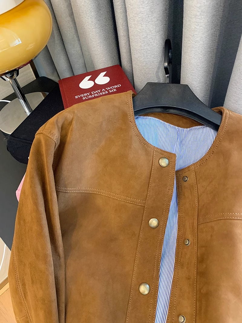 여성을위한 하이 엔드 브라운 스웨이드 짧은 재킷 복고풍 2025 새로운 디자인 아메리칸 캐주얼 트렌디 브랜드 재킷 탑스토어 가기