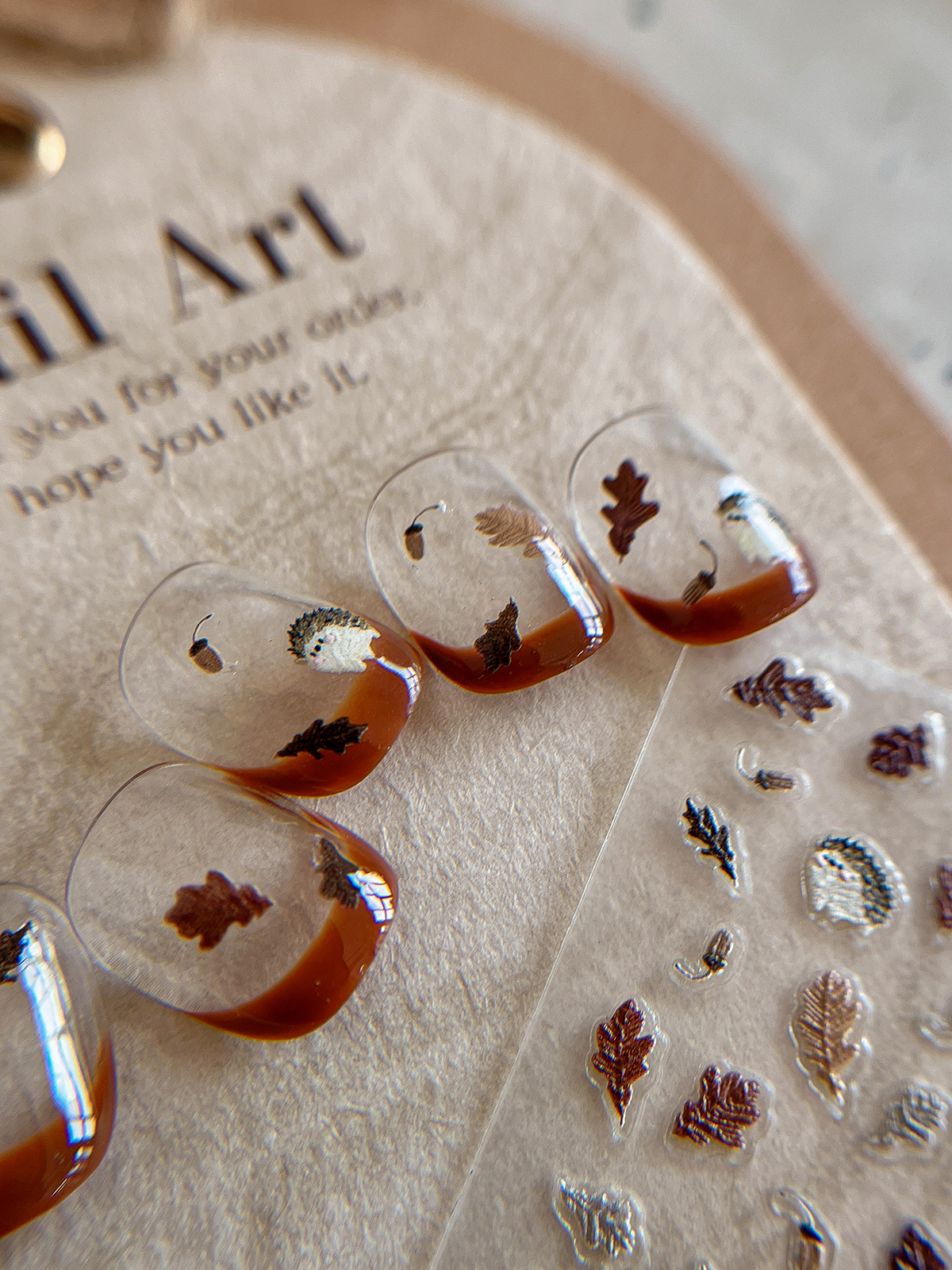 YITU 개미 그림 구호 고슴도치 잎 네일 아트 스티커 죽은 잎 가벼운 바람 접착 네일 장식 스티커 YT4145스토어 가기