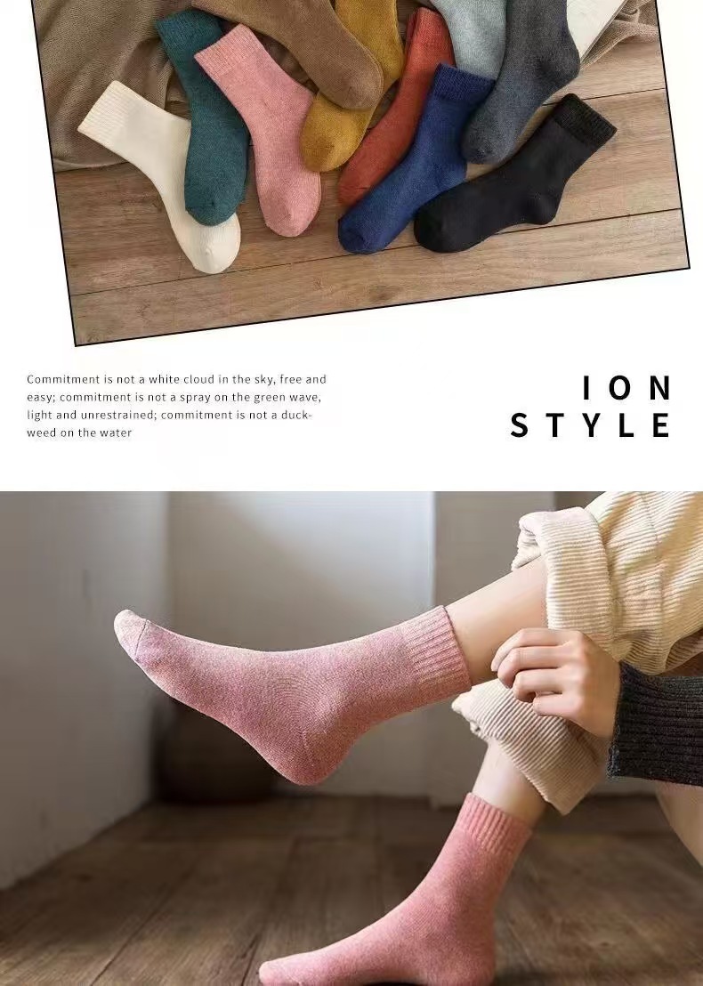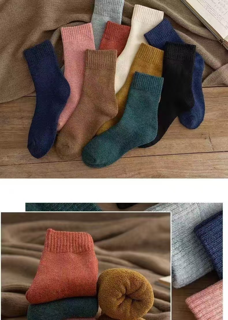 두꺼운 테리 양말 여성의 내한성 벨벳 코튼 중간 길이 튜브 따뜻한 겨울 다재다능한 트렌드 부동액 두꺼운 수건 양말
