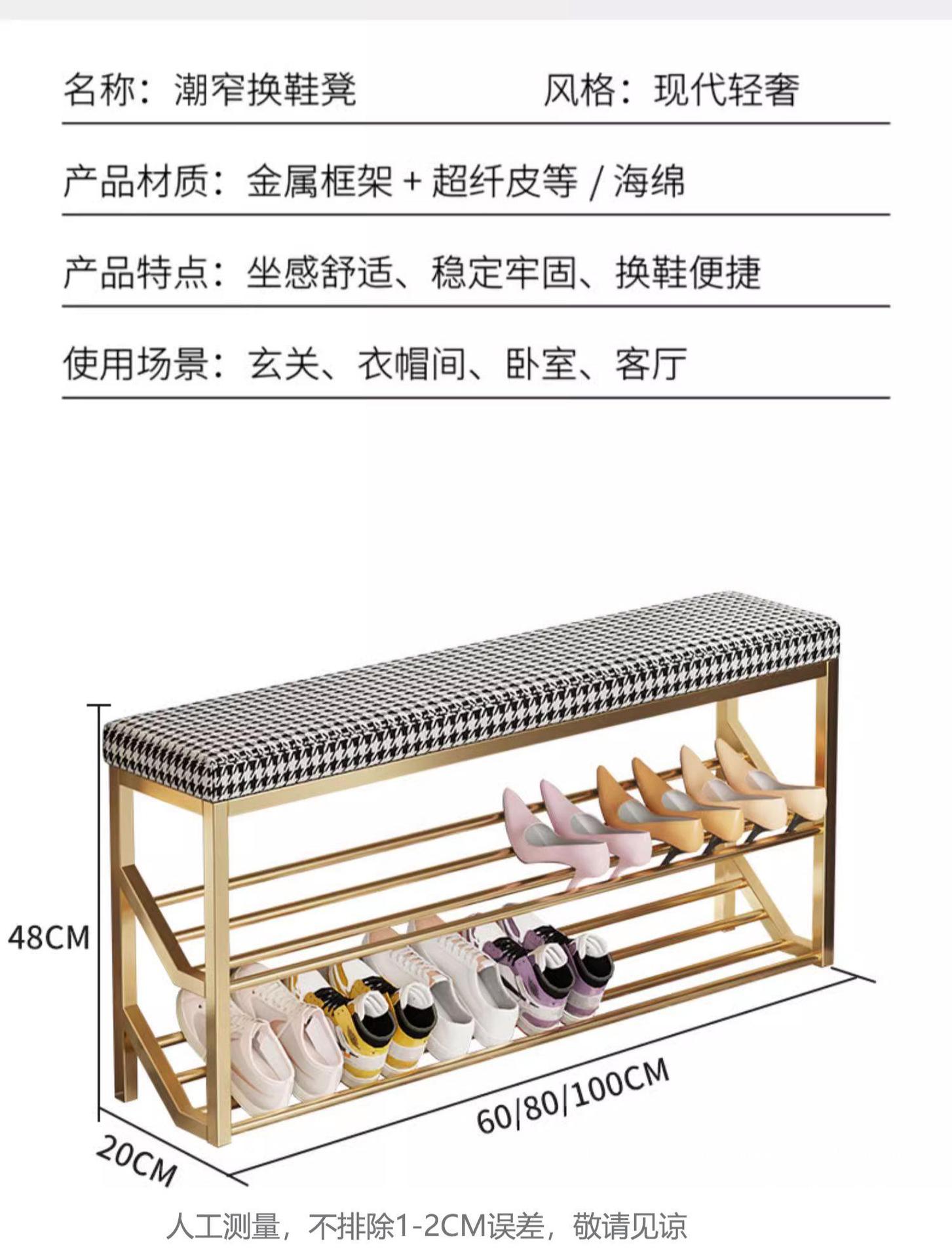 • 라이트 럭셔리 골드 [골드 프레임 + 다크 그레이 가죽] 80_20_48cm (설치 불필요)