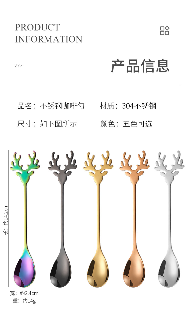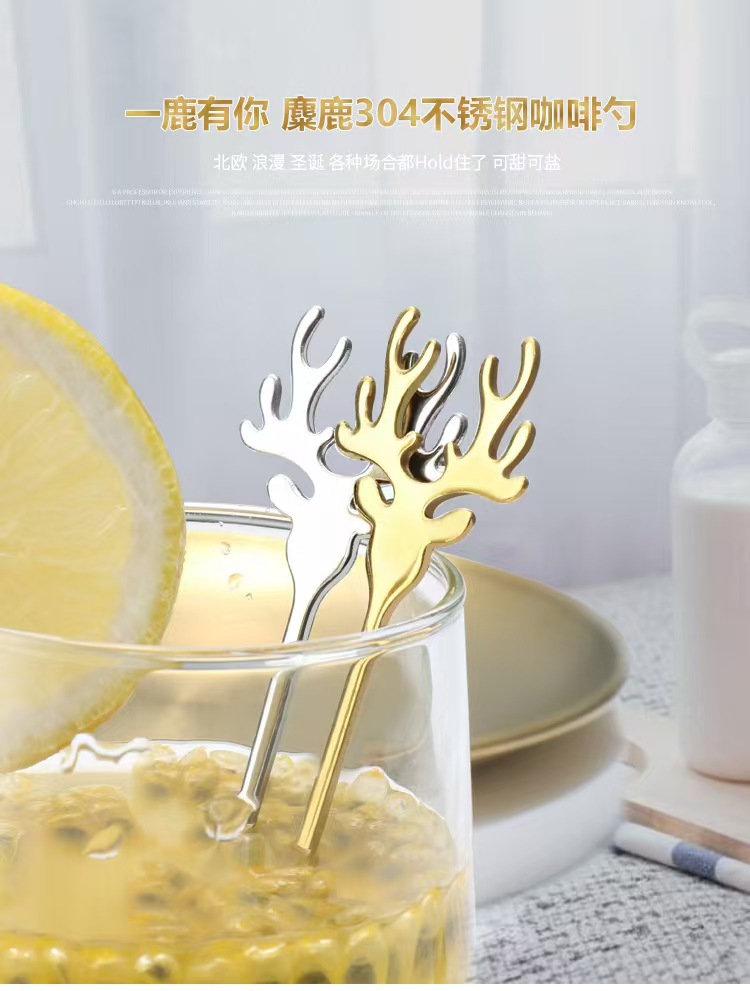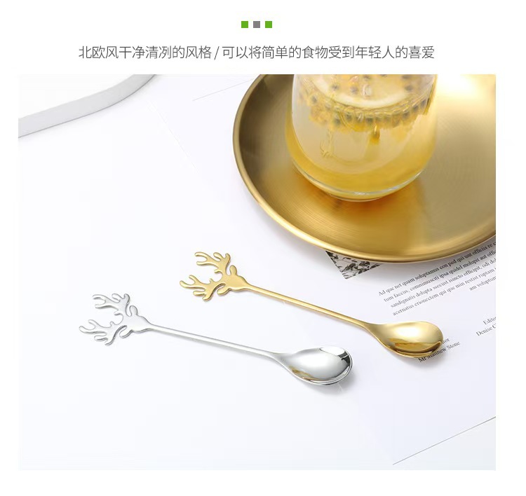 304 스테인레스 스틸 엘크 스푼 크리에이티브 커피 스푼 혼합 스푼 크리스마스 선물 스푼 새 둥지 스푼 디저트 스푼스토어 가기