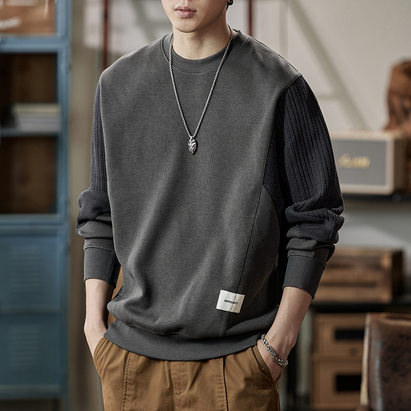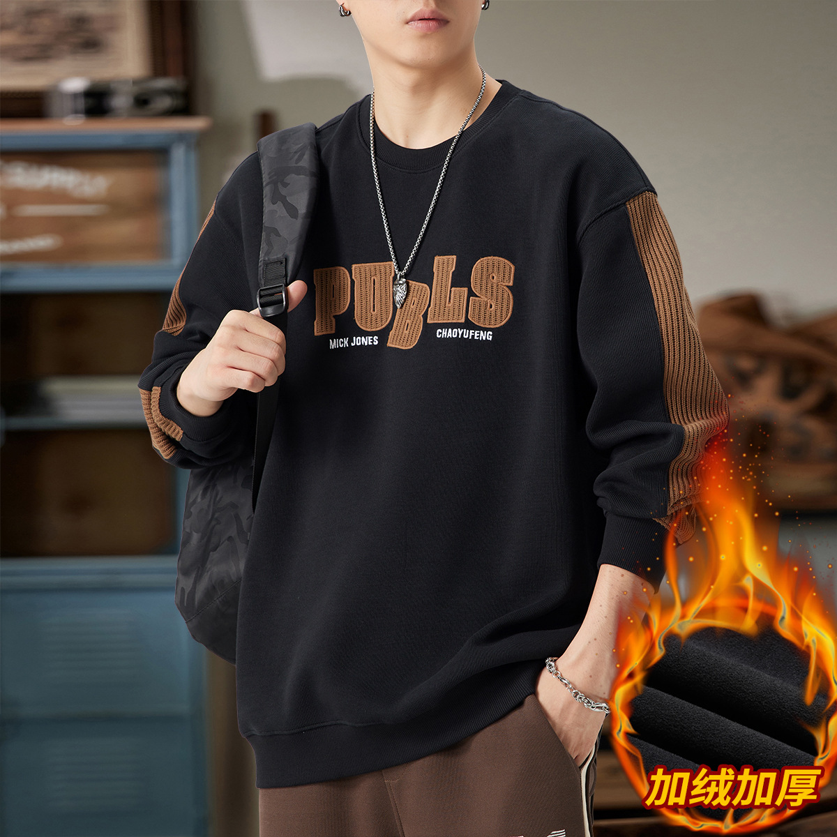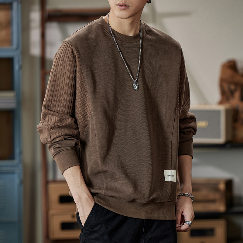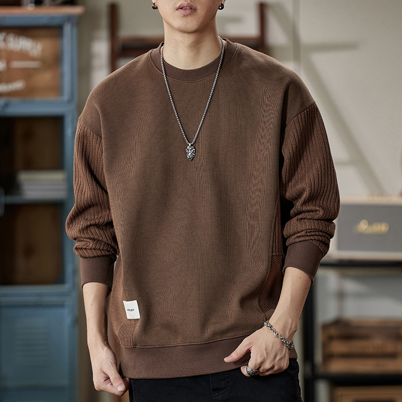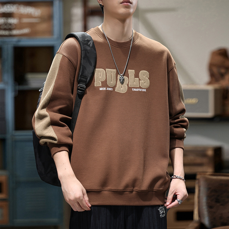 스웨터 남자의 가을과 겨울 느슨한 잘 생긴 둥근 목 베이지베이스 셔츠 새로운 2024 소년을위한 니트 긴 소매 탑스토어 가기