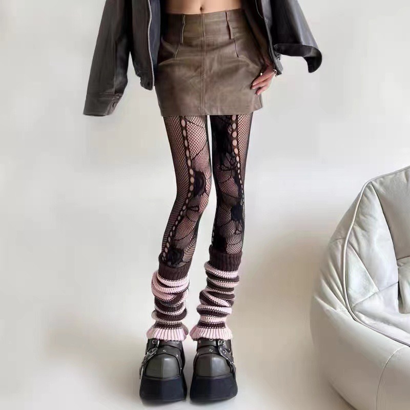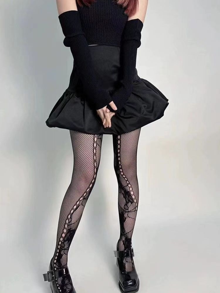 봄과 여름 새로운 Y2K 스파이스 걸스 할로우 레트로 팬티 스타킹 하위 문화 불규칙한 레이스 피쉬 넷 스타킹