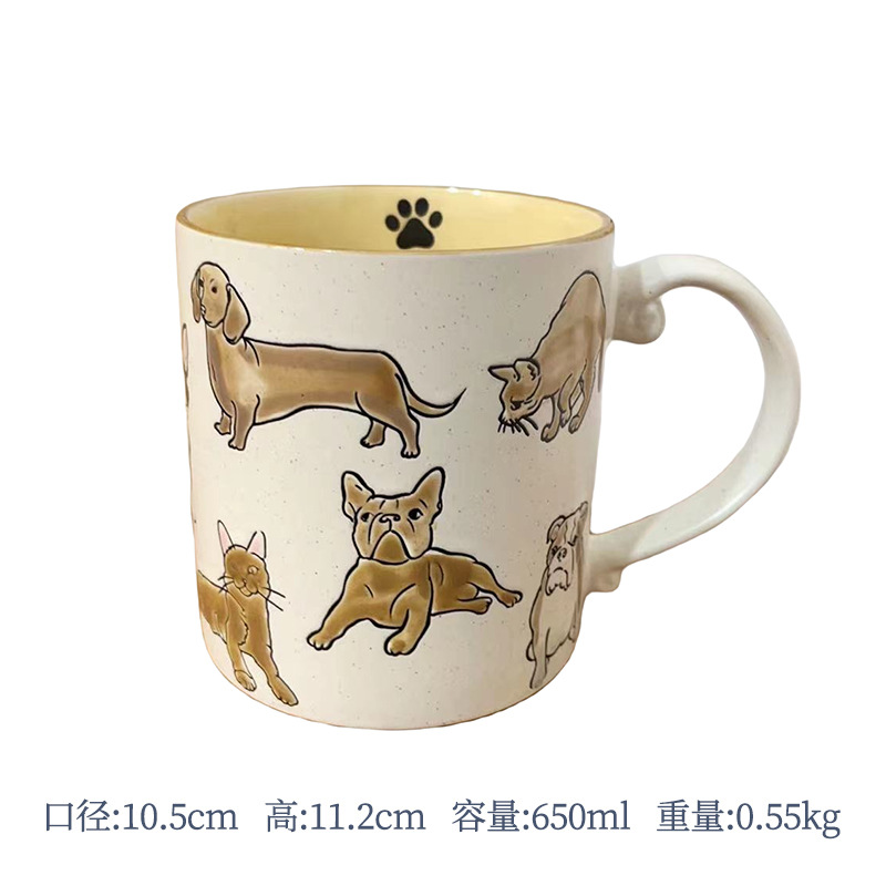 • 브라운 커플 스타일 고양이 라지 스트레이트 컵-화이트