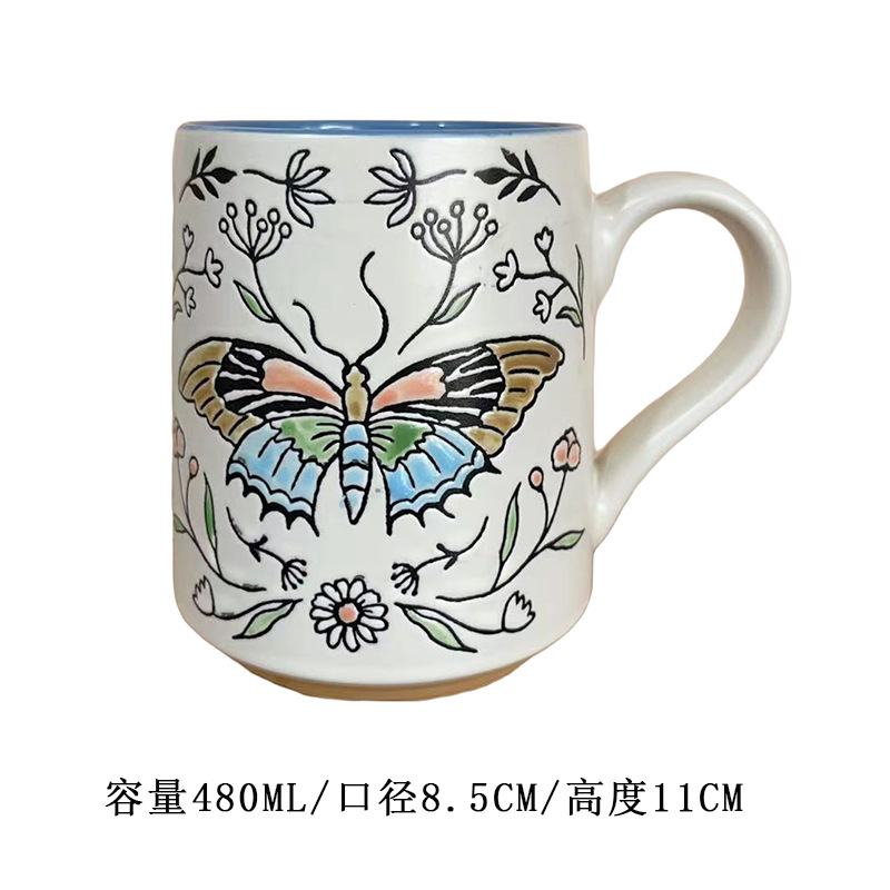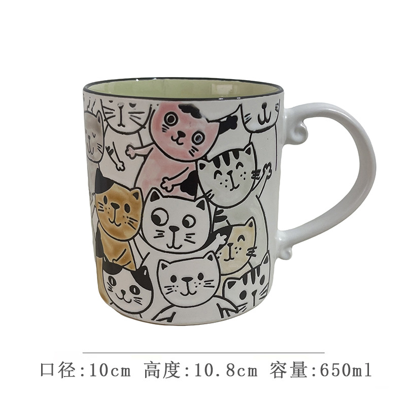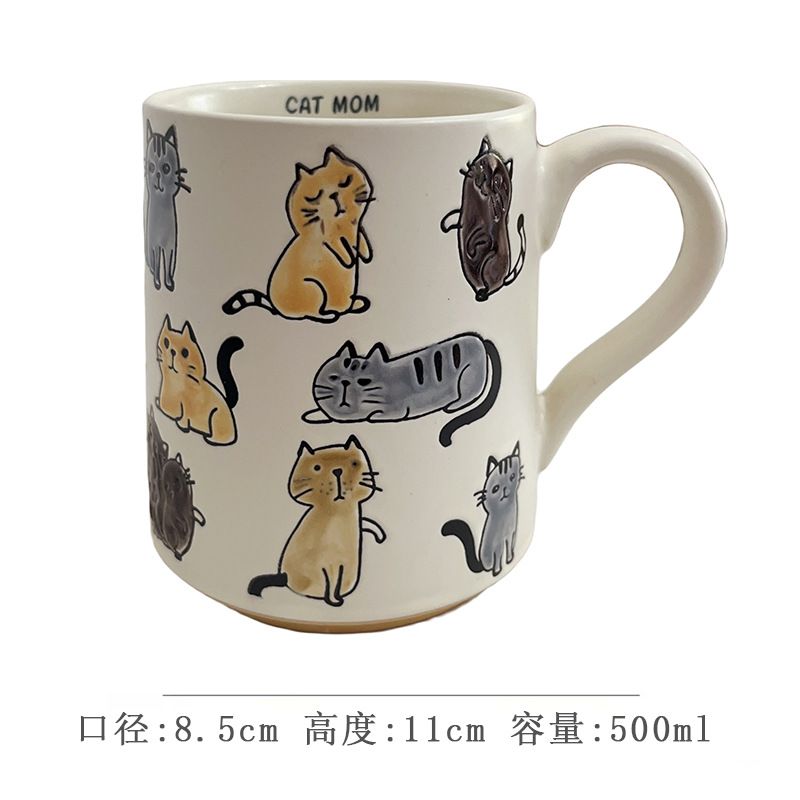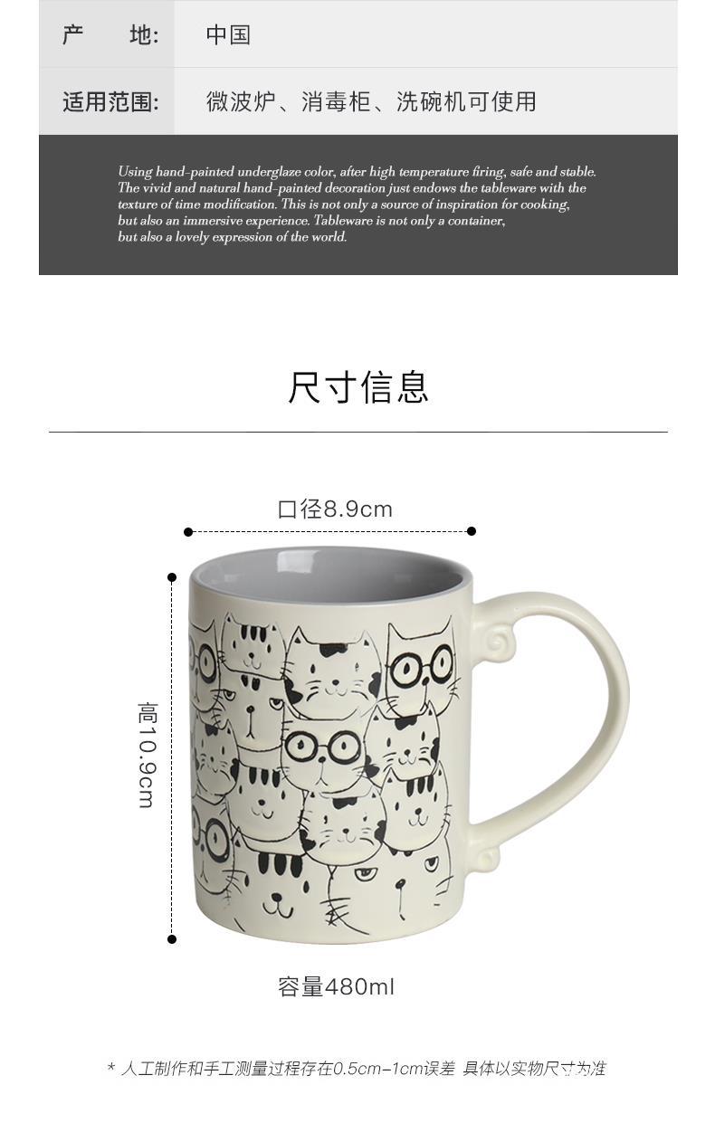 세라믹 언더 유약 컬러 손으로 그린 귀여운 고양이 머그잔 마시는 컵 아침 식사 컵 오트밀 컵 커플 전자 레인지스토어 가기