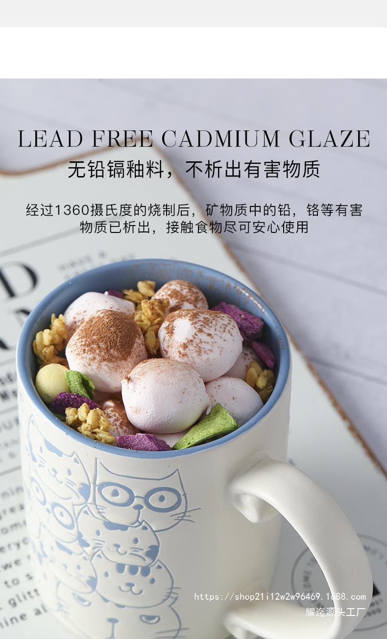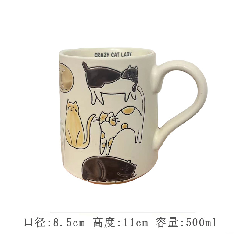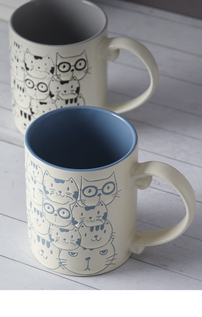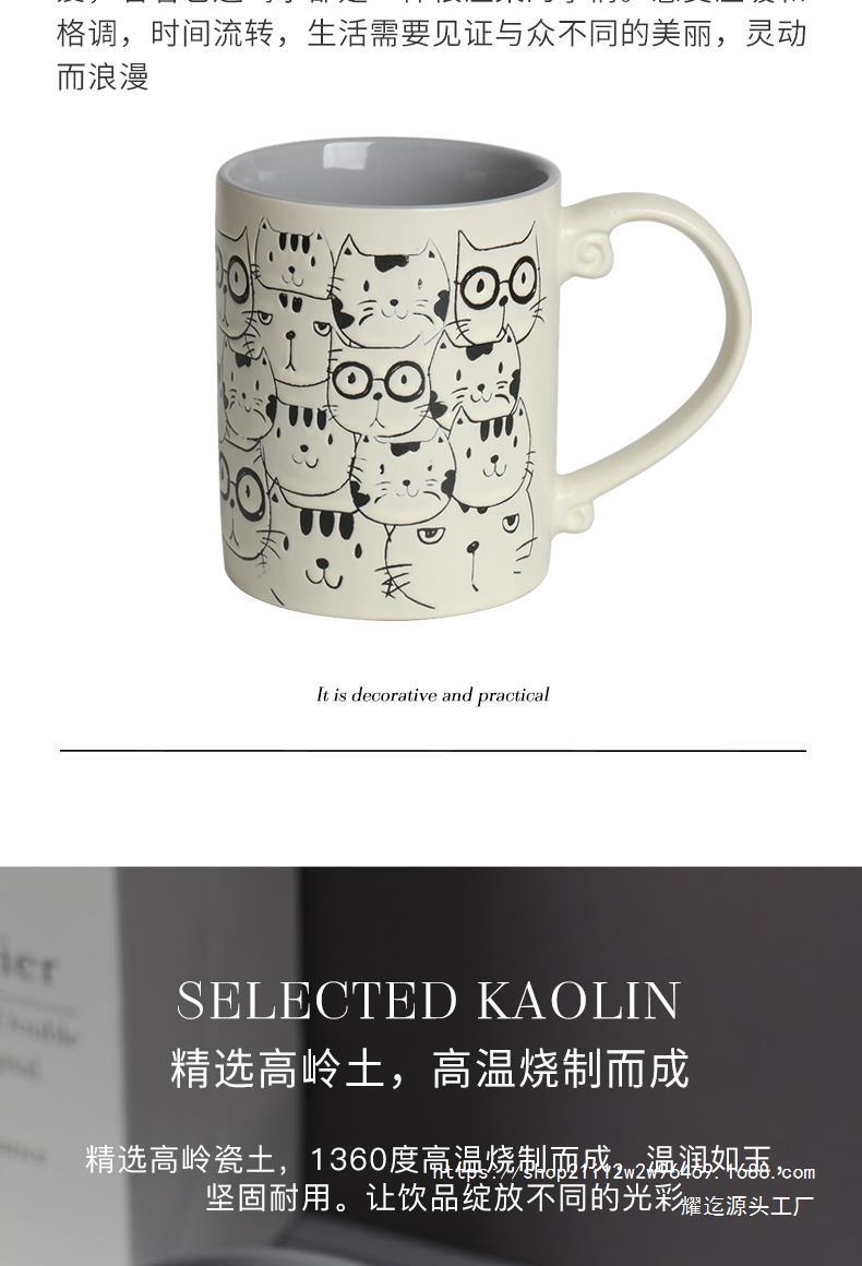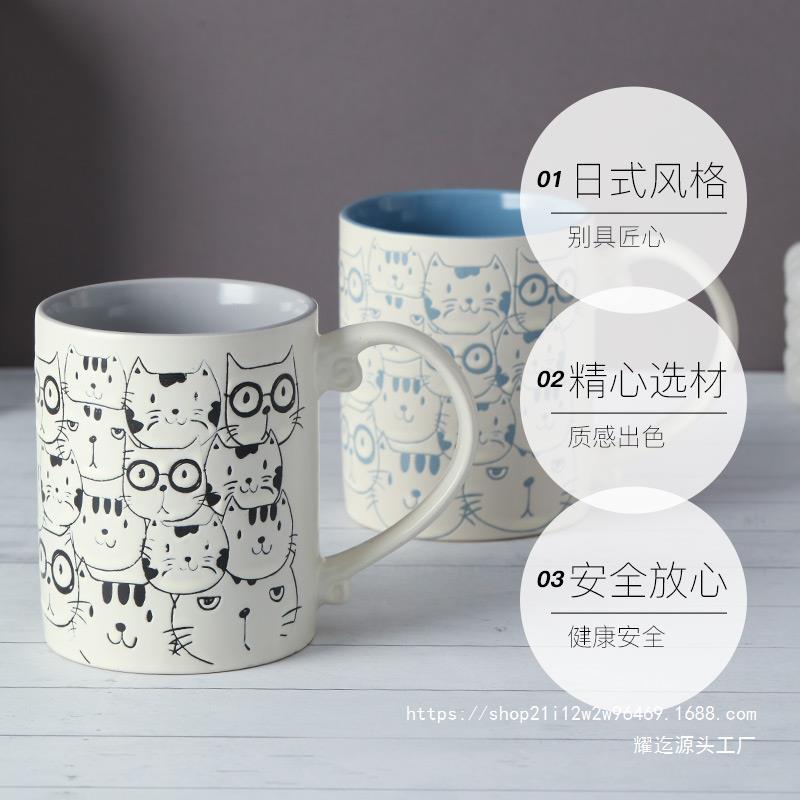 세라믹 언더 유약 컬러 손으로 그린 귀여운 고양이 머그잔 마시는 컵 아침 식사 컵 오트밀 컵 커플 전자 레인지