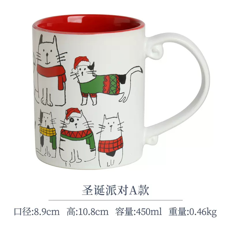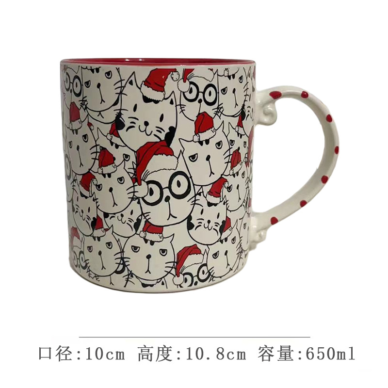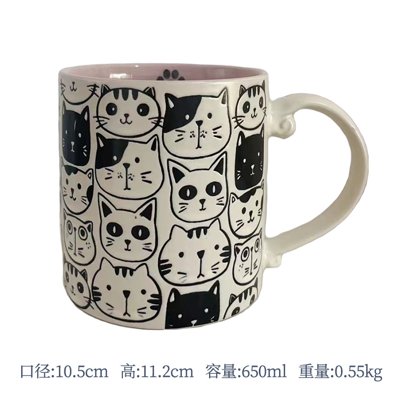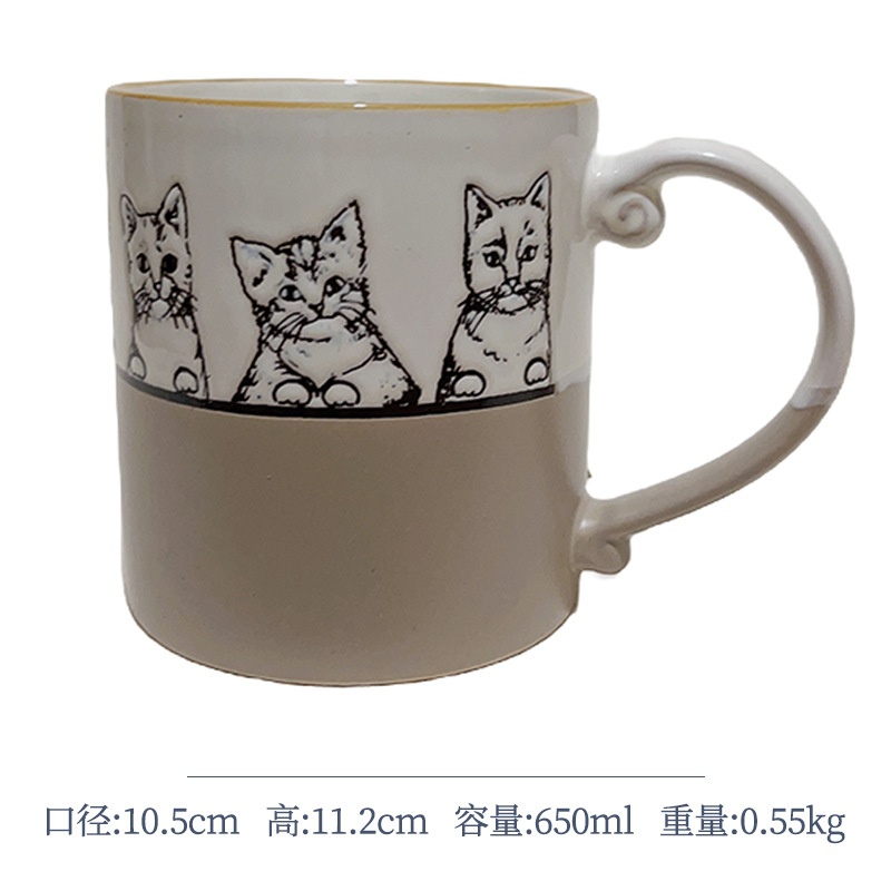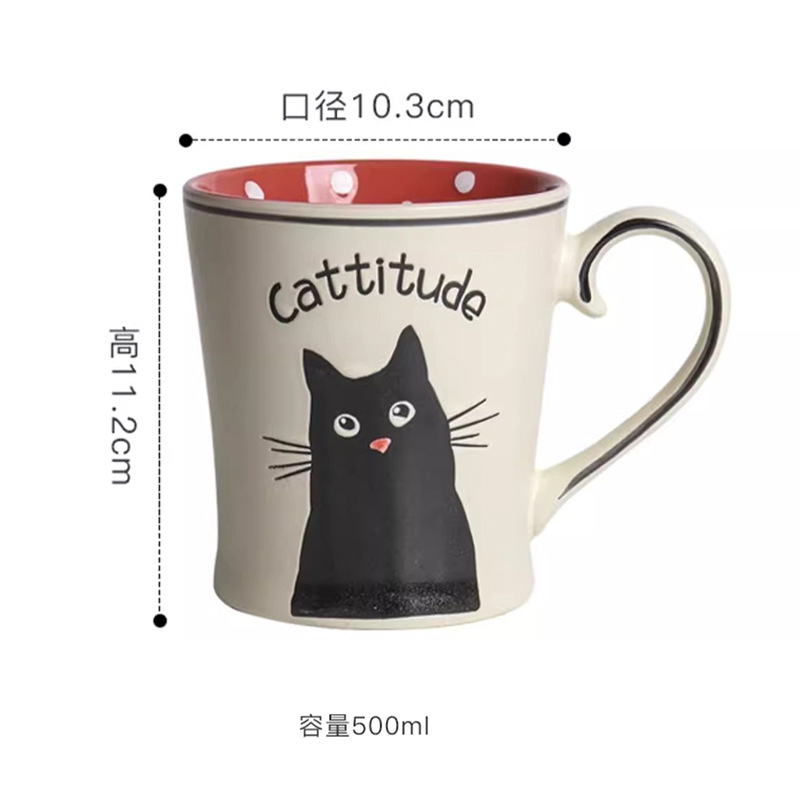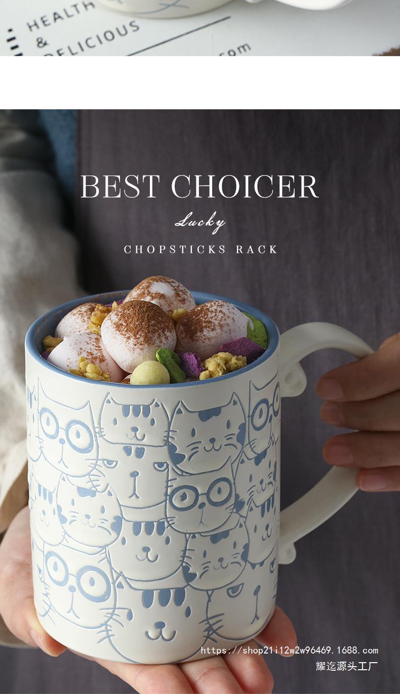 세라믹 언더 유약 컬러 손으로 그린 귀여운 고양이 머그잔 마시는 컵 아침 식사 컵 오트밀 컵 커플 전자 레인지