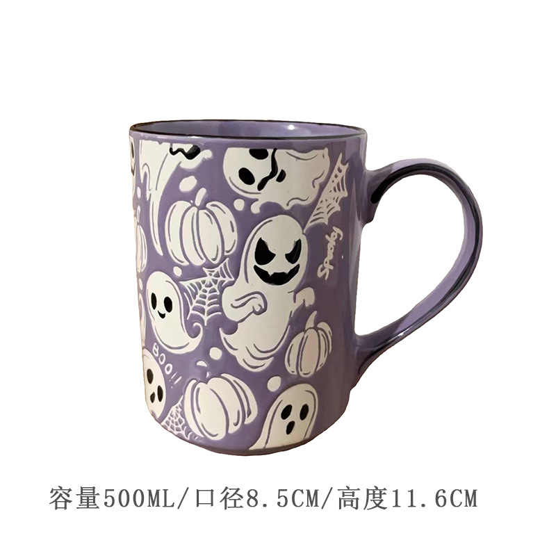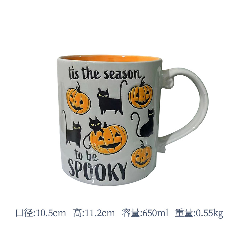 • 내부는 주황색, 외부는 회색 SPOOKY 고양이와 호박 대형 스트레이트 컵