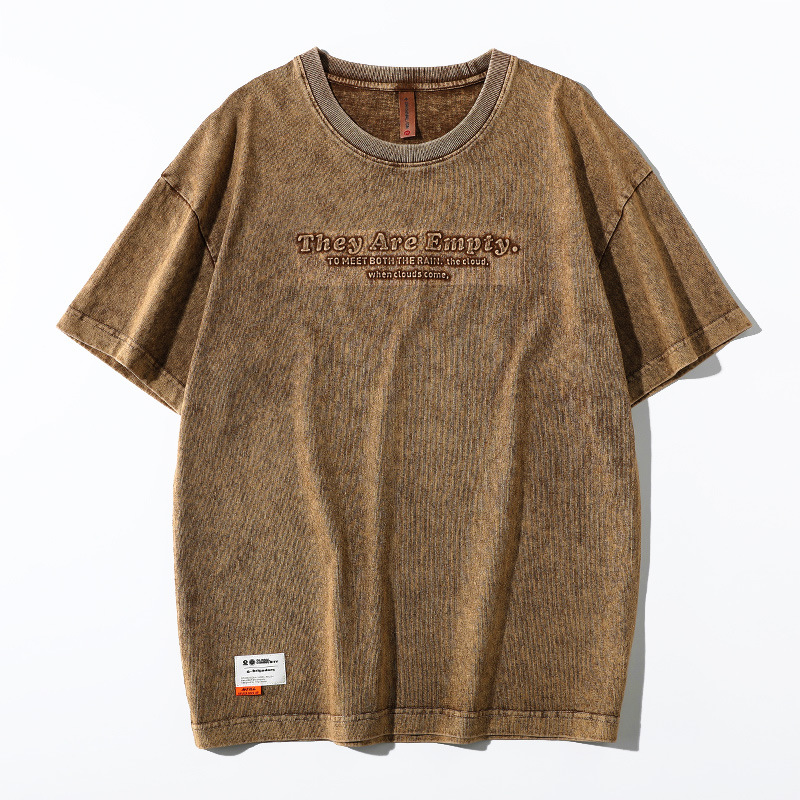 미국식 헤비웨이트 레트로 워싱 레터 프린팅 반팔 티셔츠 남성용 루즈핏 트렌디 브랜드 2025 가을 반팔 티셔츠 남성용스토어 가기