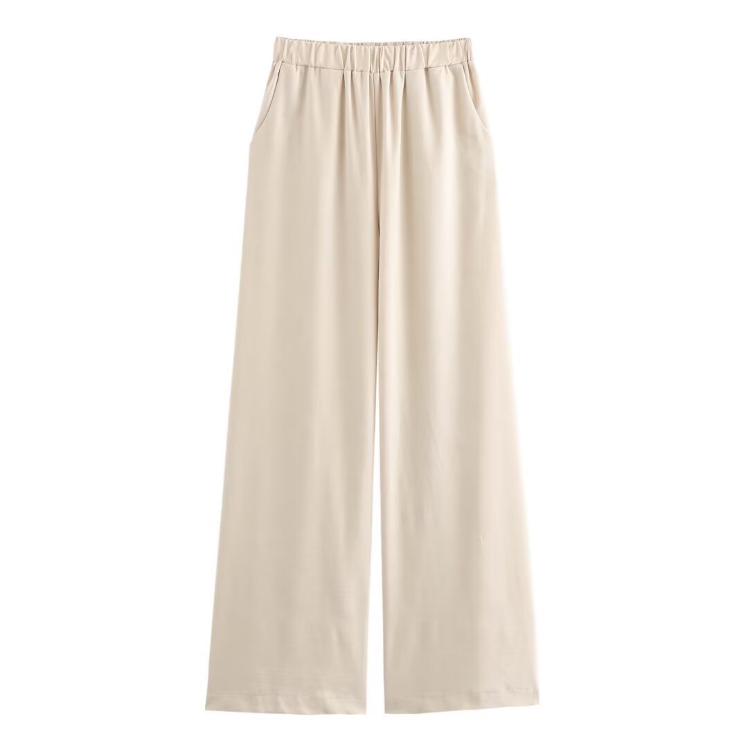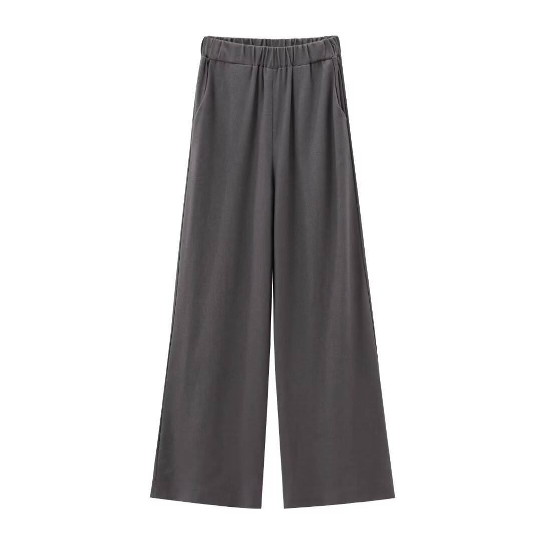UC & ZA 국경 아마존 유럽과 미국의 여성 게으른 스타일 느슨한 캐주얼 코튼 및 리넨 팬츠 스트레이트 레그 와이드 레그 팬츠