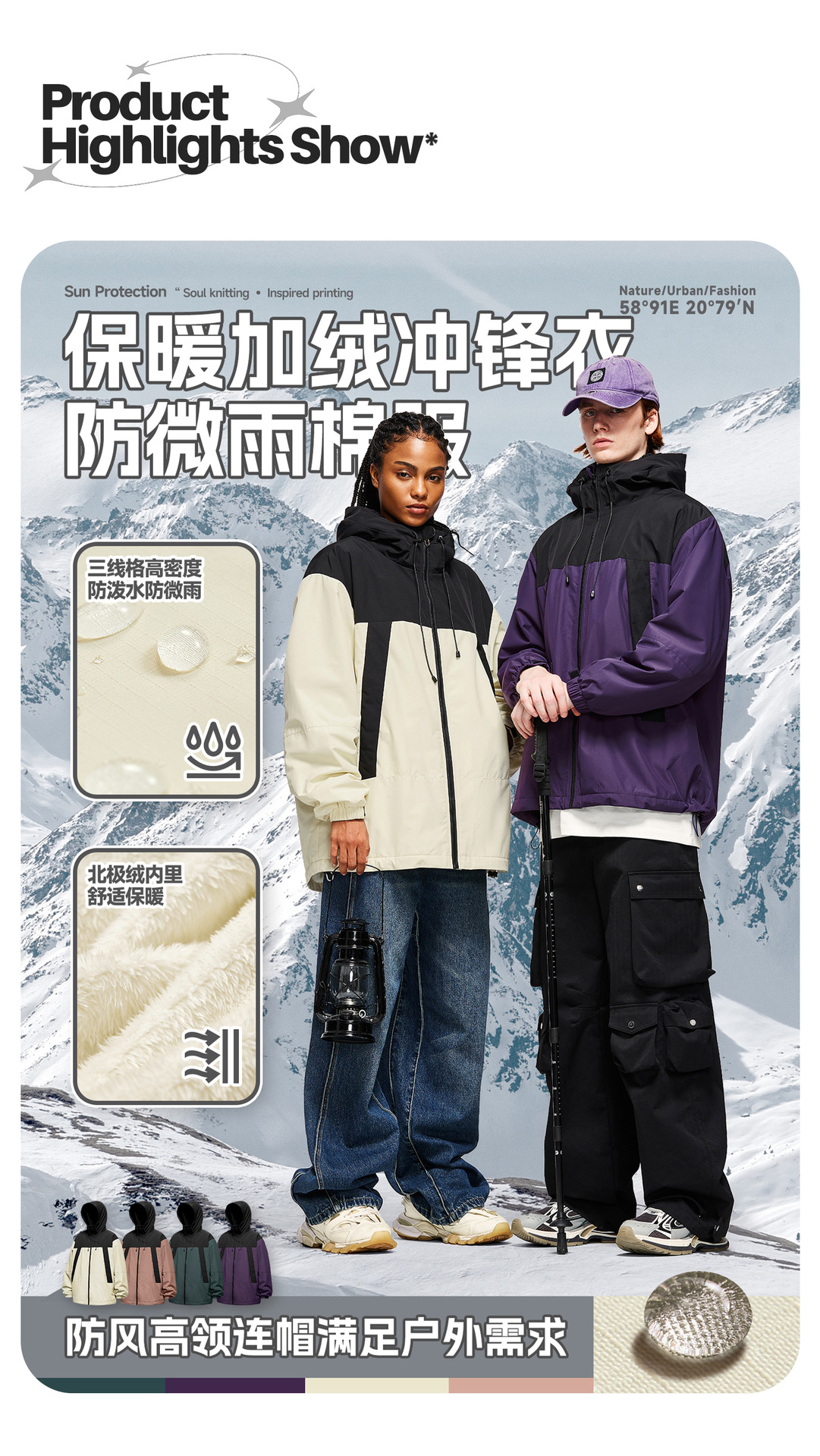 제이전 남성복 | 산악용 보온 플리스 안감 재킷 2024 가을 겨울 아웃도어 지퍼 방풍 재킷