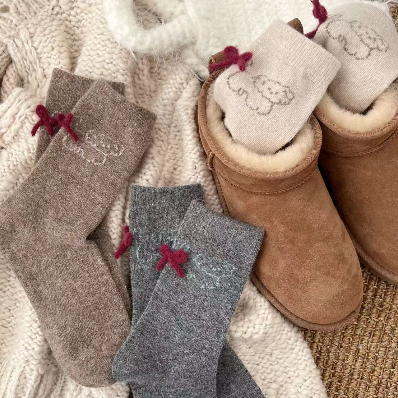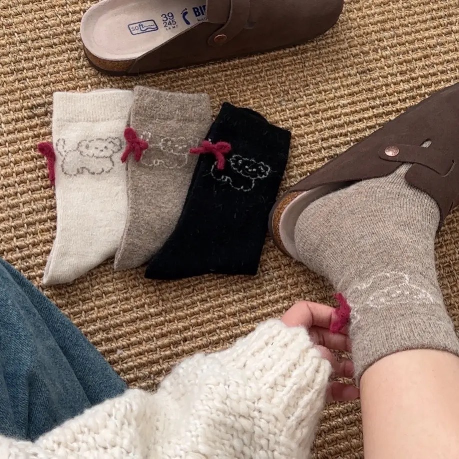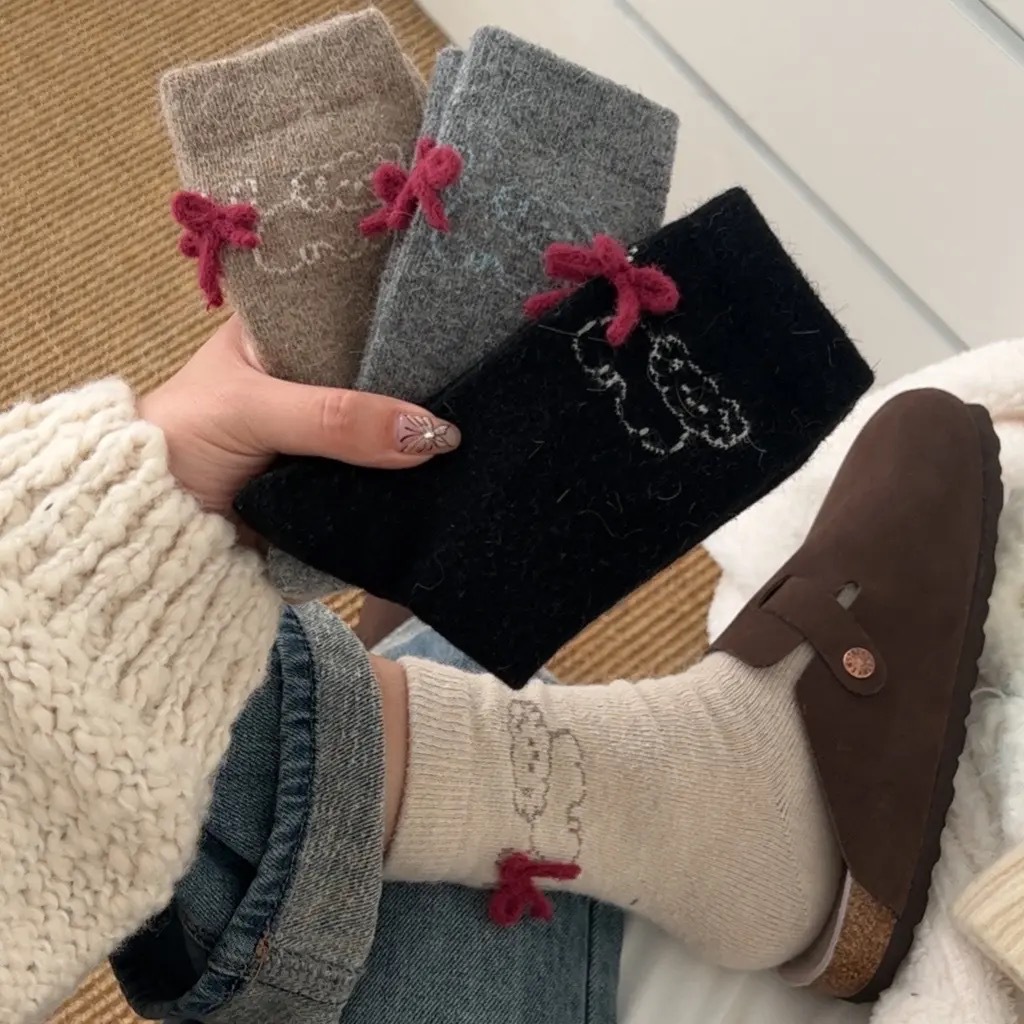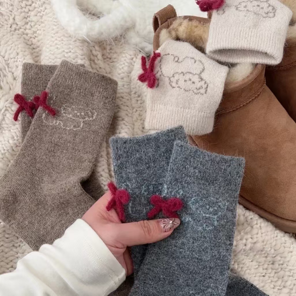 토끼 양모 강아지 양말 여성 꼬리 보석 빨간 활 귀여운 일본식 양말 따뜻한 여성용 양말스토어 가기