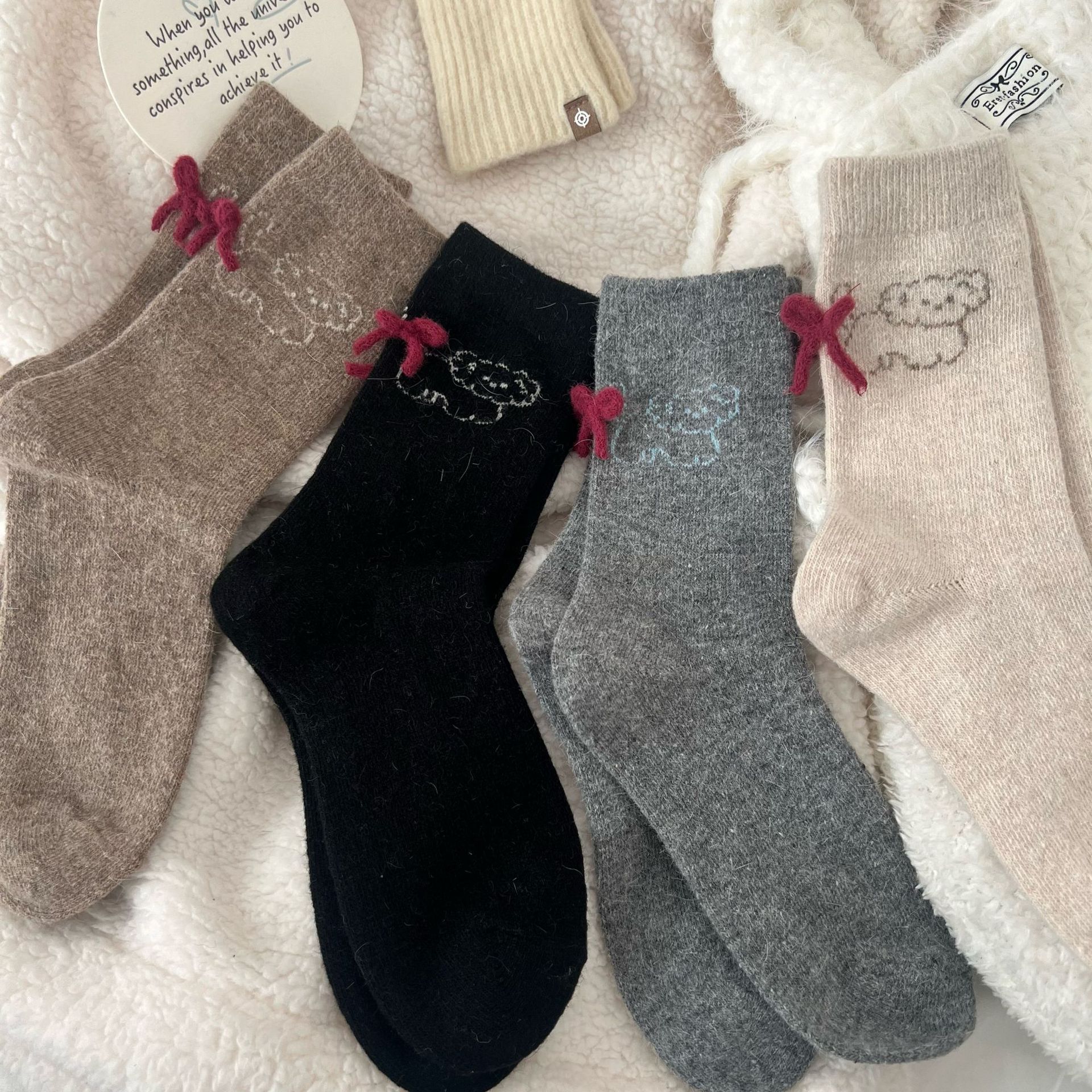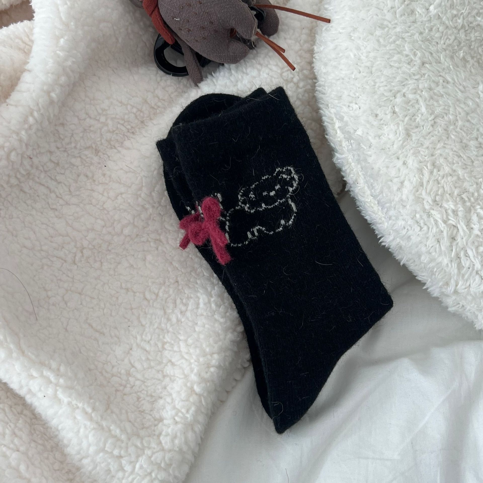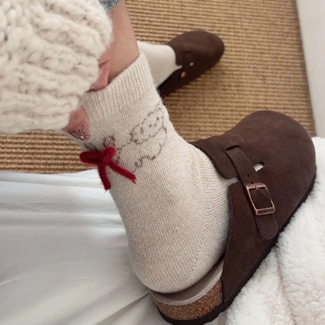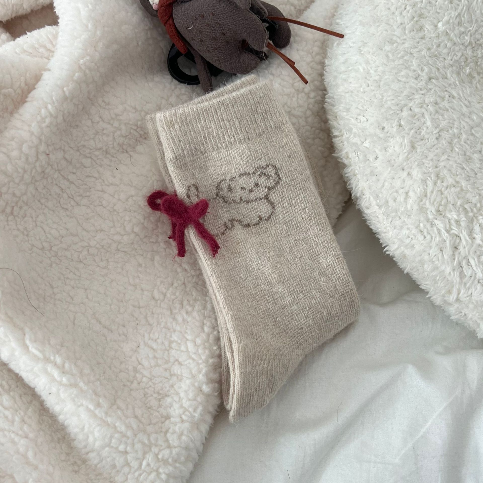토끼 양모 강아지 양말 여성 꼬리 보석 빨간 활 귀여운 일본식 양말 따뜻한 여성용 양말스토어 가기