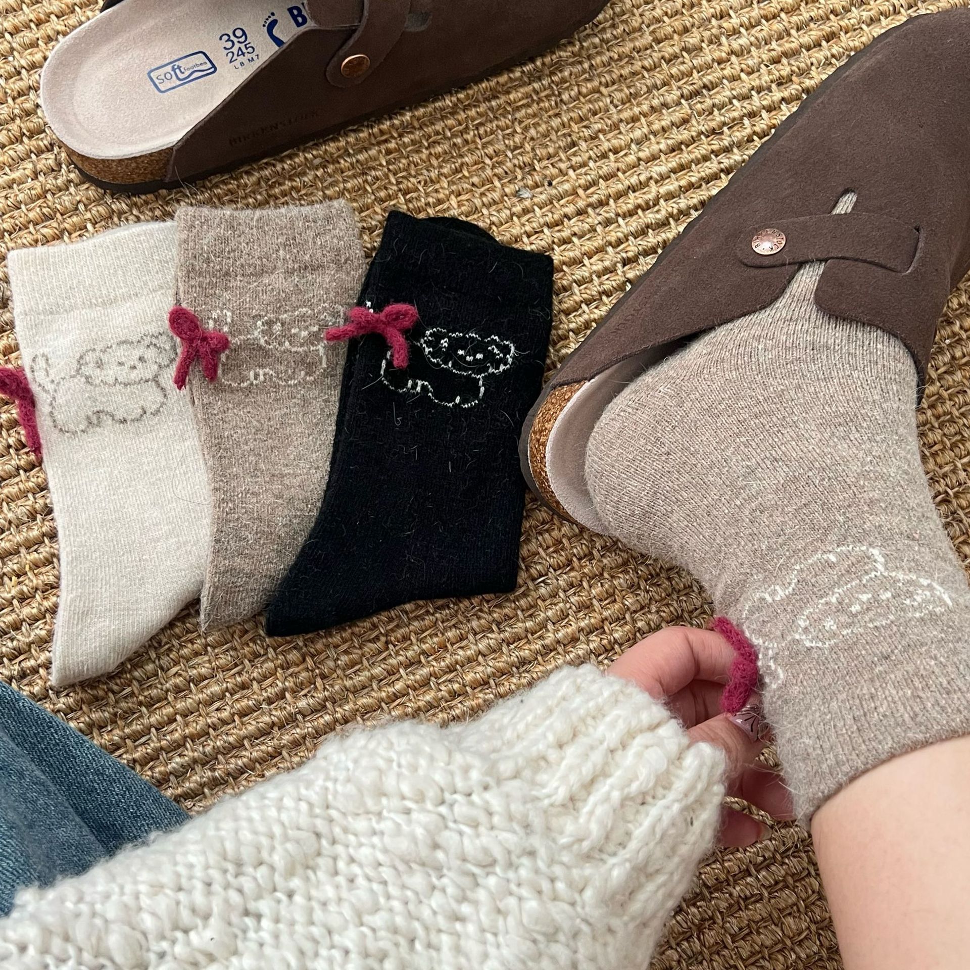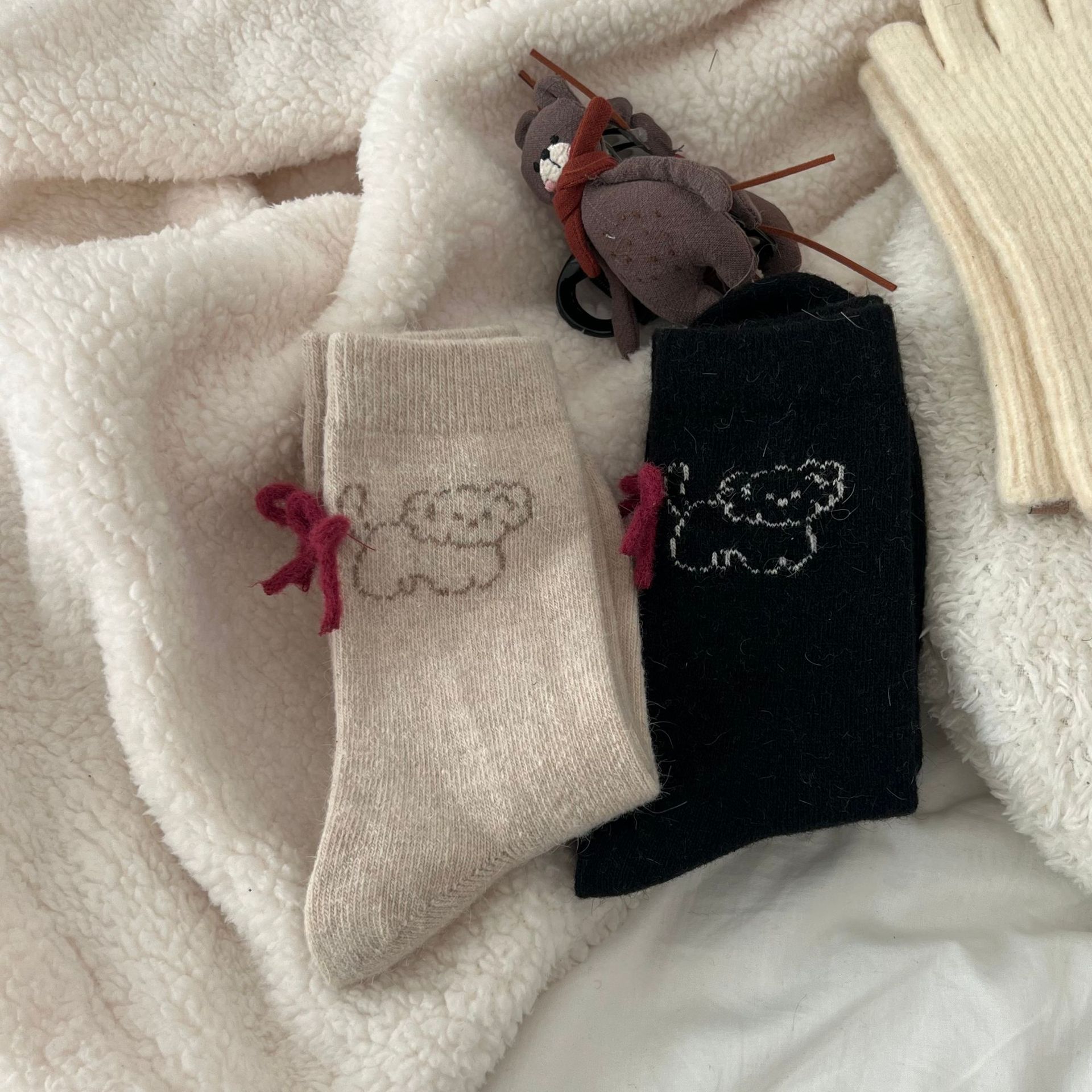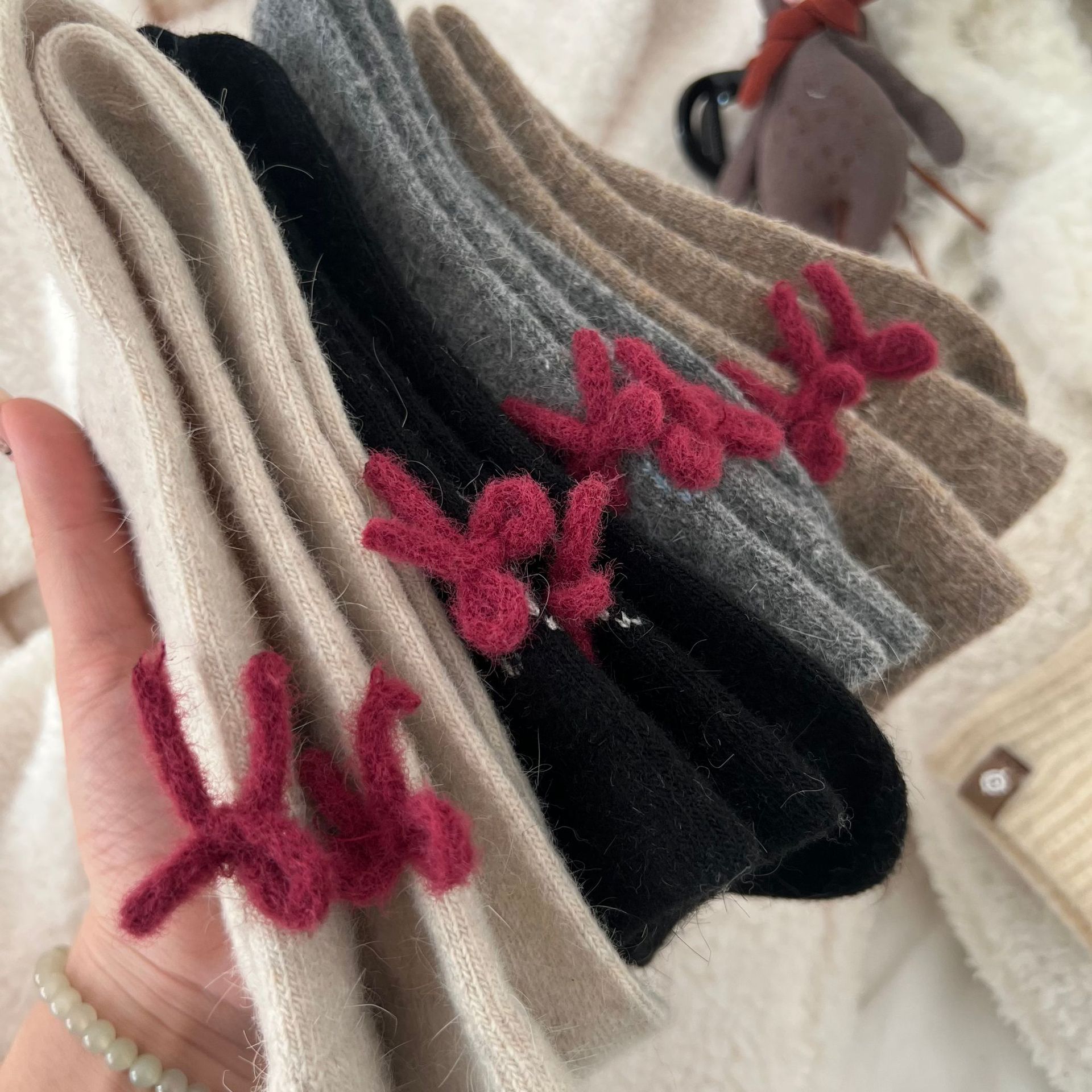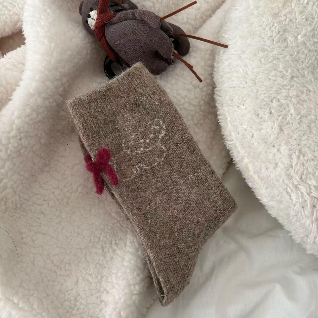 토끼 양모 강아지 양말 여성 꼬리 보석 빨간 활 귀여운 일본식 양말 따뜻한 여성용 양말스토어 가기