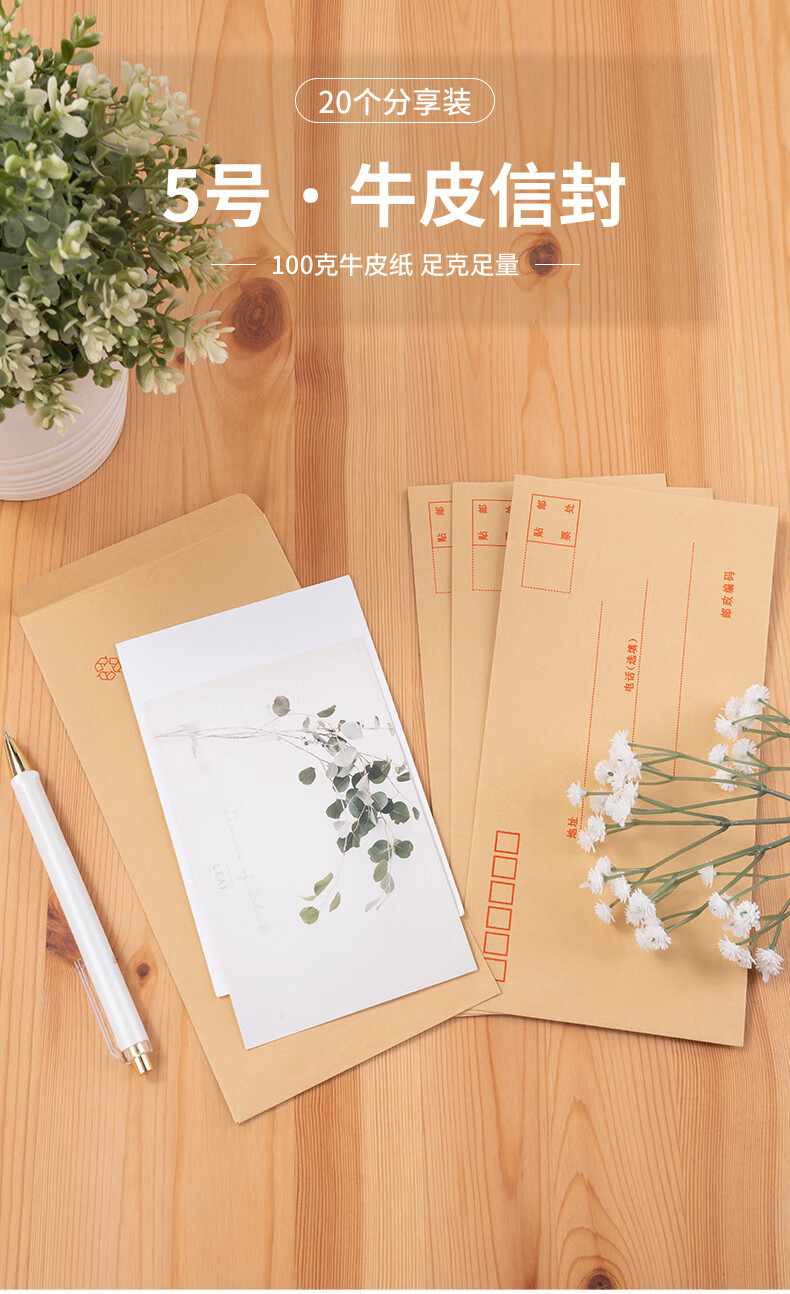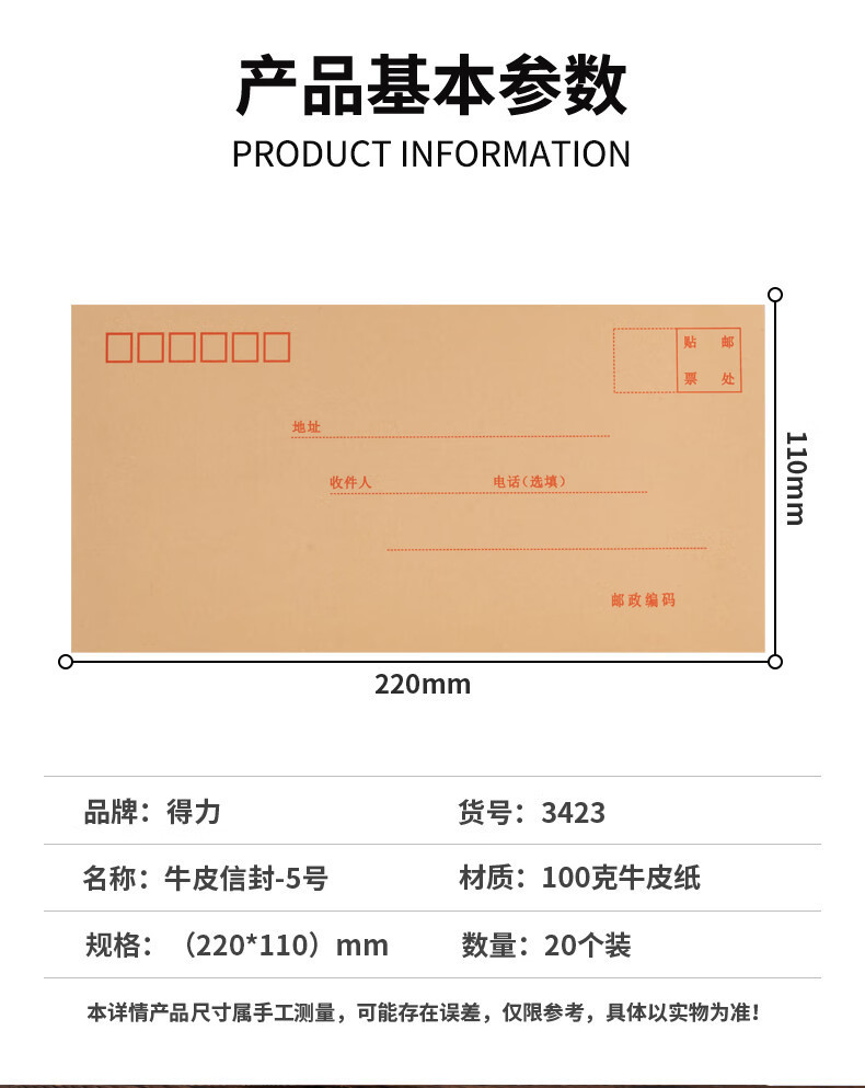 델리 3423 봉투 No.5 크래프트 종이 우체국 표준 봉투 봉투 급여 봉투 20/1 팩