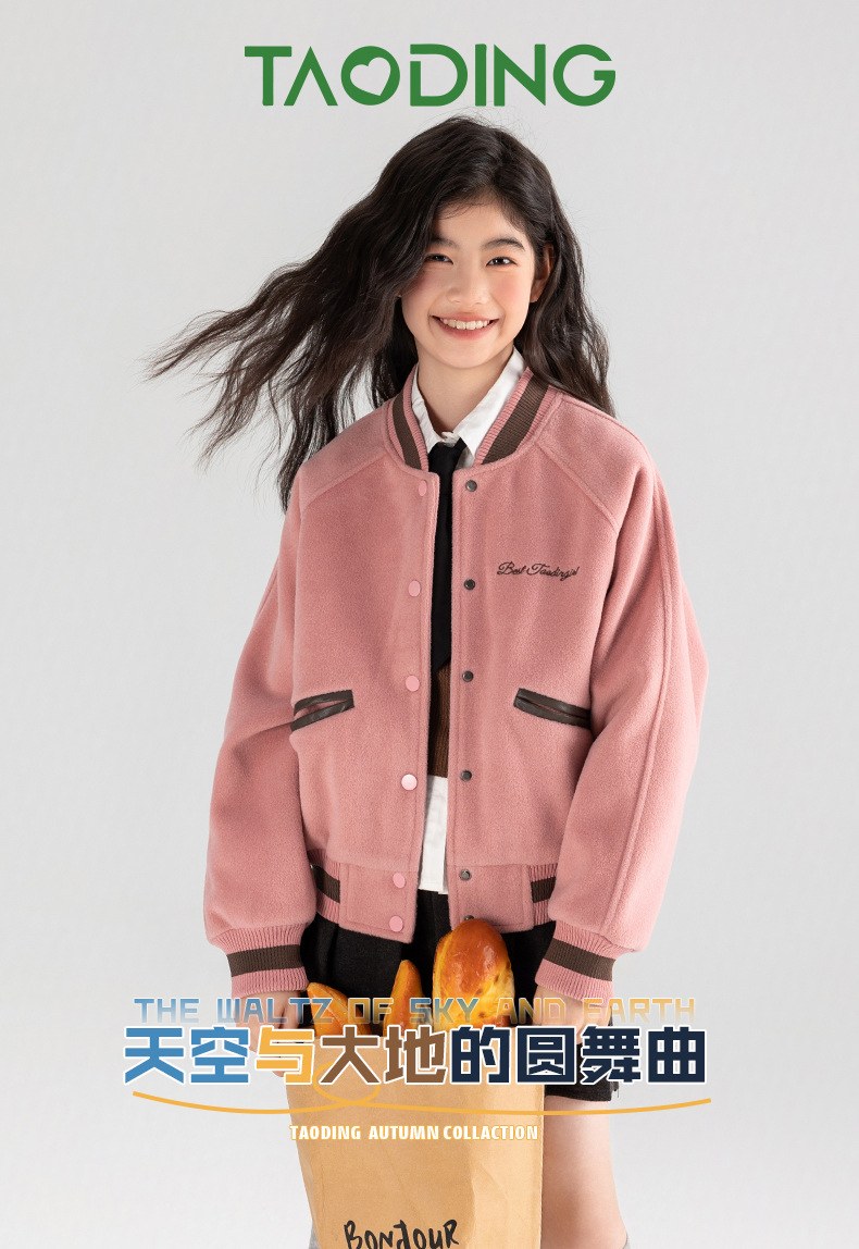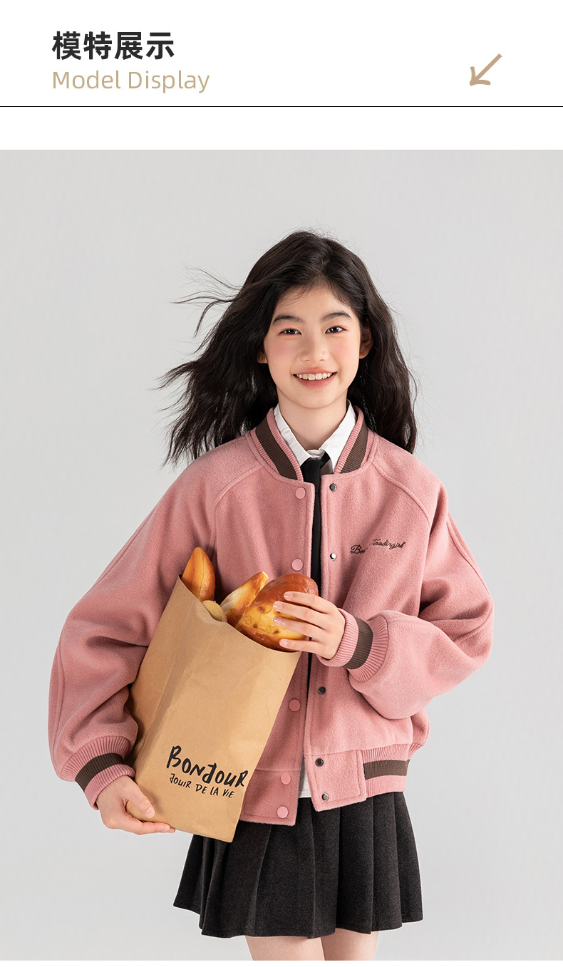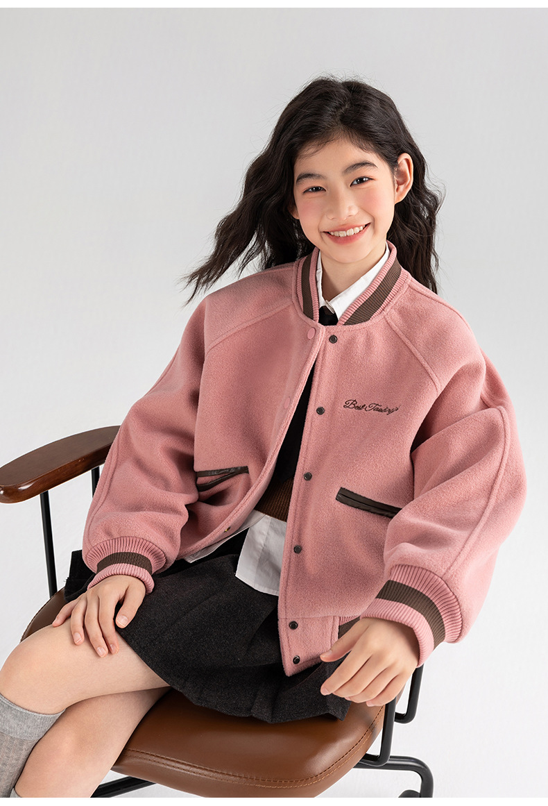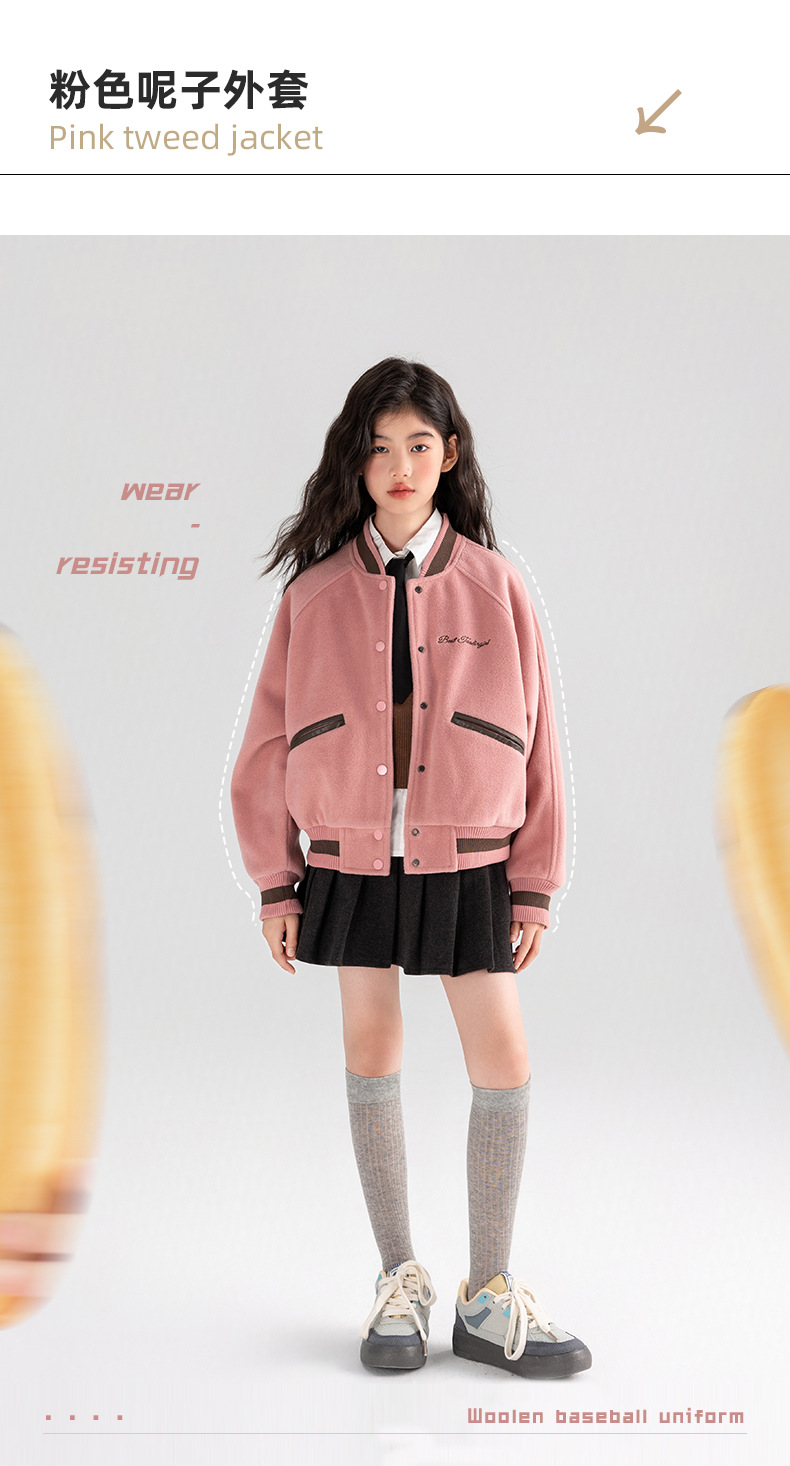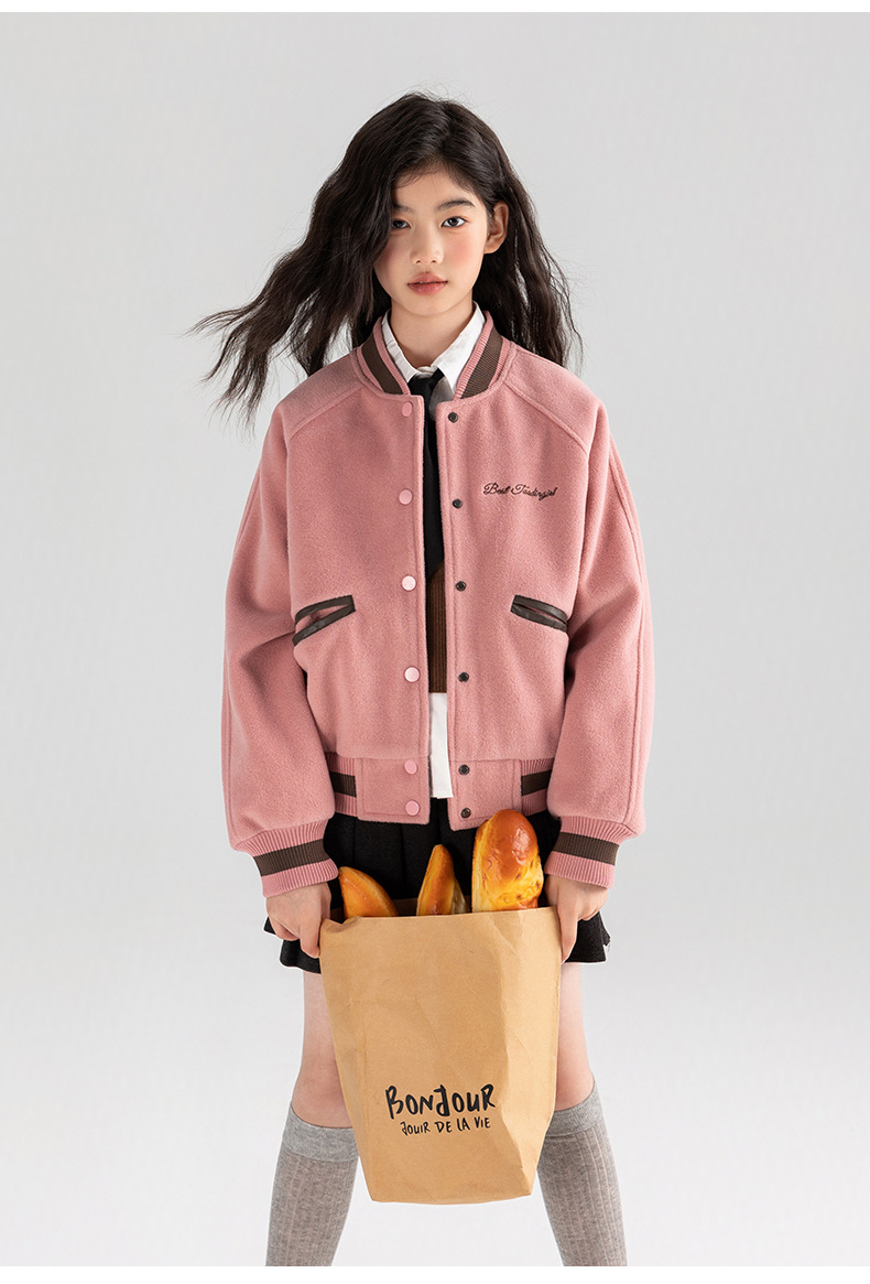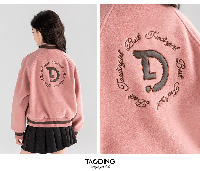 Amoy 여자 야구 세트 가을 새로운 빈티지 자수 가죽 북유럽 서양식 새로운 미드 빅 키즈 봄과 가을 재킷