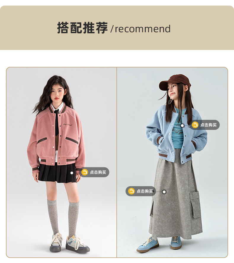 Amoy 여자 야구 세트 가을 새로운 빈티지 자수 가죽 북유럽 서양식 새로운 미드 빅 키즈 봄과 가을 재킷스토어 가기