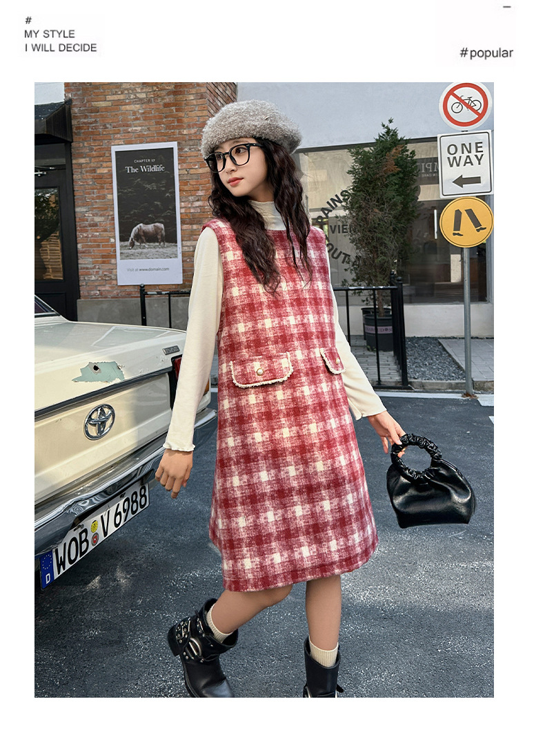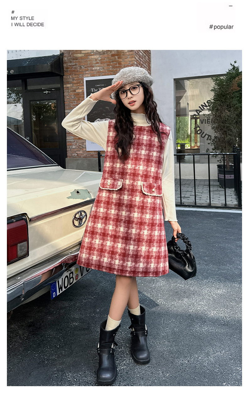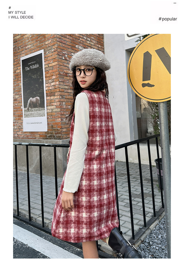 소녀들의 새해 원피스 큰 어린이 플러스 사이즈 느슨한 격자 무늬 퀼트 선드레스 원피스 레드 크리스마스 분위기스토어 가기