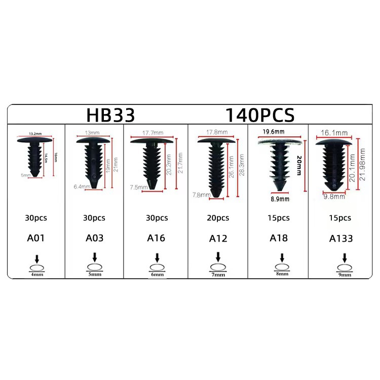 140pcs 박스 플라스틱 버클 범퍼 고정 클립 자동차 라이닝 보드 천장 리벳 대외 무역 커버 버클