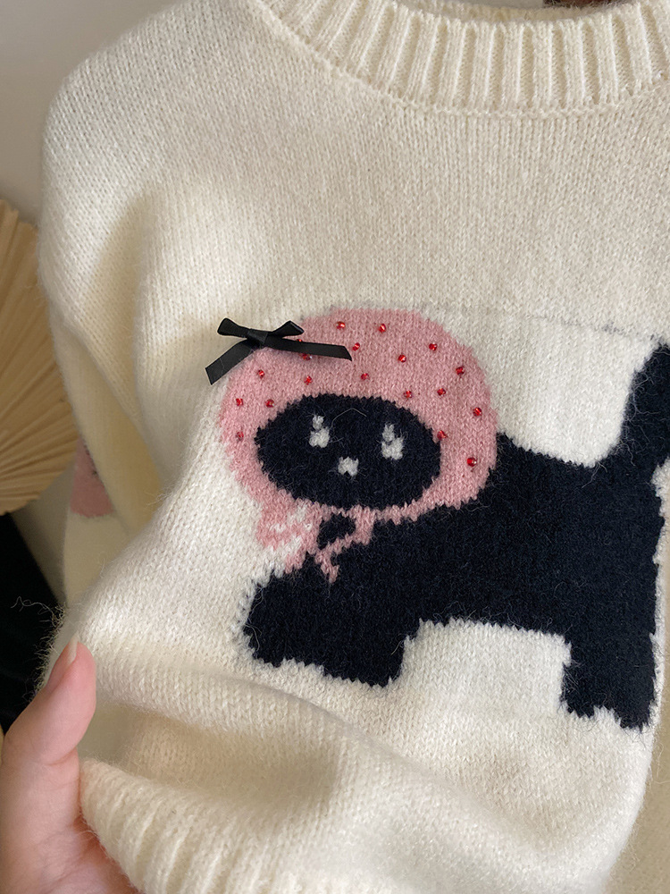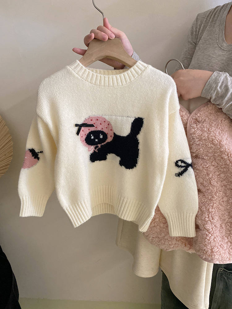 여자 한국 만화 니트 스웨터 2024 가을과 겨울 새로운 기모 넓은 다리 바지 기모 따뜻한 울 스웨터 세트스토어 가기