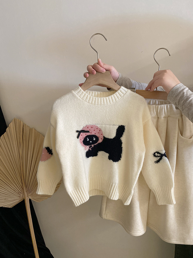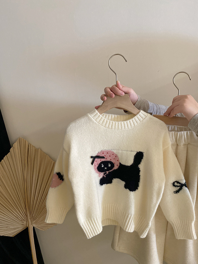 여자 한국 만화 니트 스웨터 2024 가을과 겨울 새로운 기모 넓은 다리 바지 기모 따뜻한 울 스웨터 세트