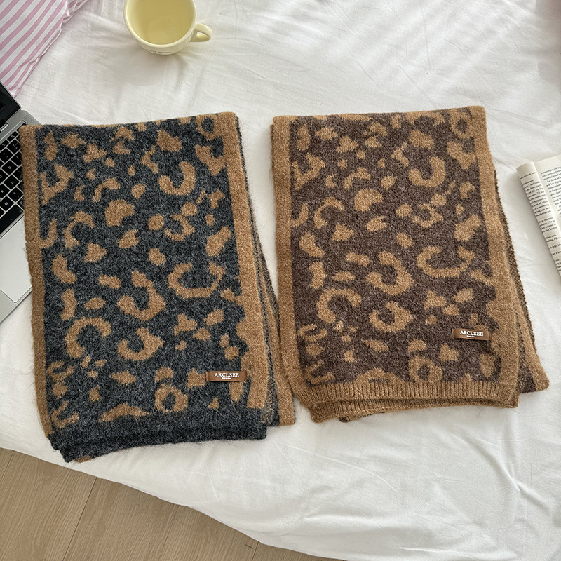 니트 울 스카프의 레오파드 무늬 큰 버전 여성의 새로운 겨울 따뜻한 캐시미어 부드러운 왁스 같은 복고풍 스카프 도매스토어 가기