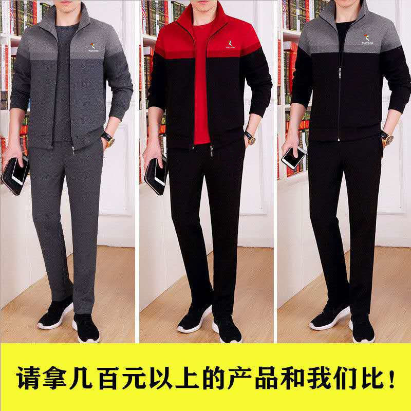 M 딱따구리 3 조각 세트 남자 봄과 가을 캐주얼 스포츠 세트 남자 느슨한 플러스 사이즈 남자 코트 옷 아빠스토어 가기