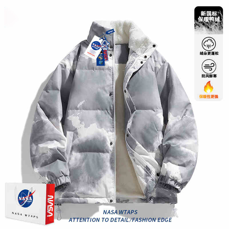 NASA 남성과 여성을위한 위장 다운 재킷 겨울 2024 흰 오리 기모 두꺼운 빵 세트 커플 따뜻한 자켓스토어 가기