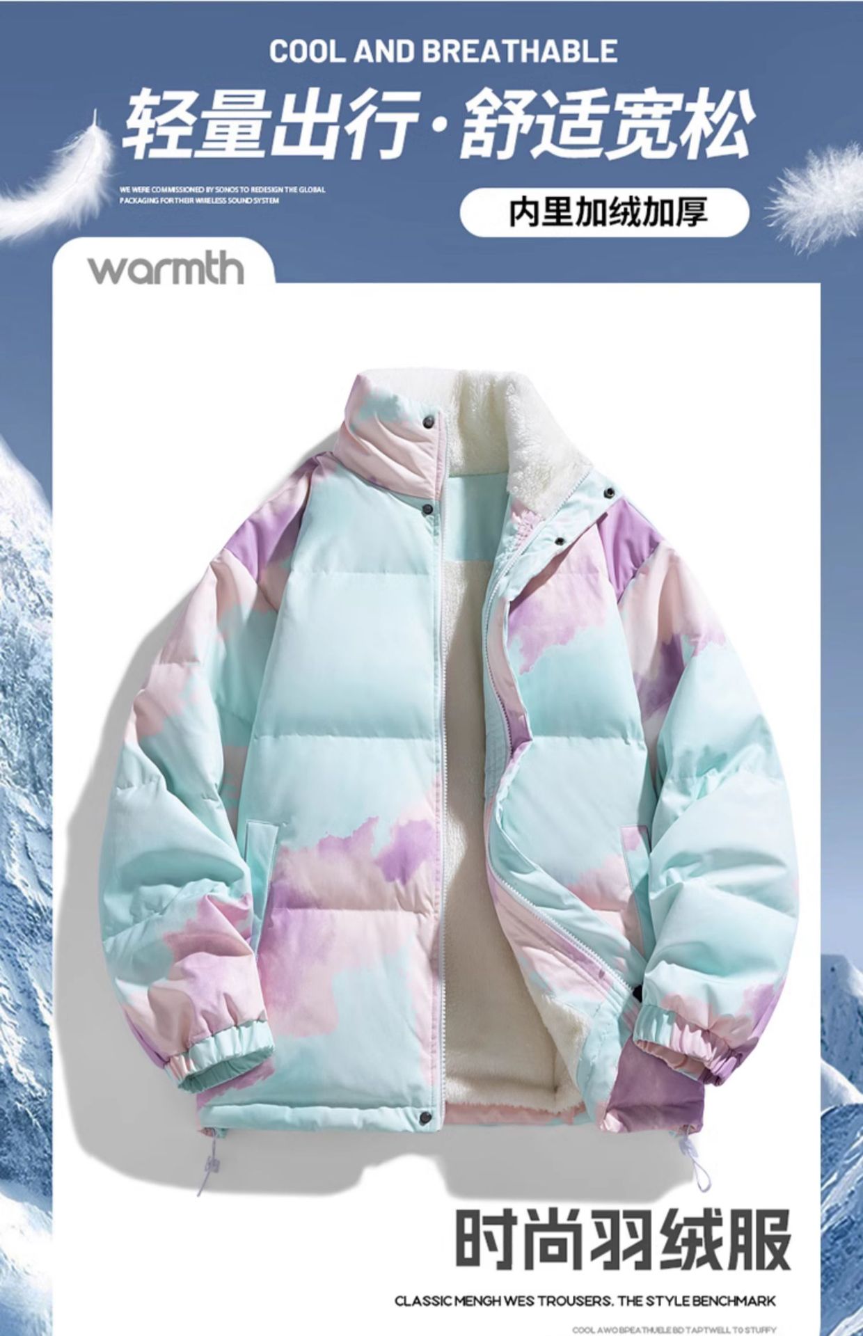 NASA 남성과 여성을위한 위장 다운 재킷 겨울 2024 흰 오리 기모 두꺼운 빵 세트 커플 따뜻한 자켓