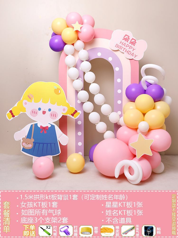 장면 1 년 된 보드 생일 파티 배경 벽 장식 어린이 레이아웃 소녀 테마 마카롱 풍선스토어 가기